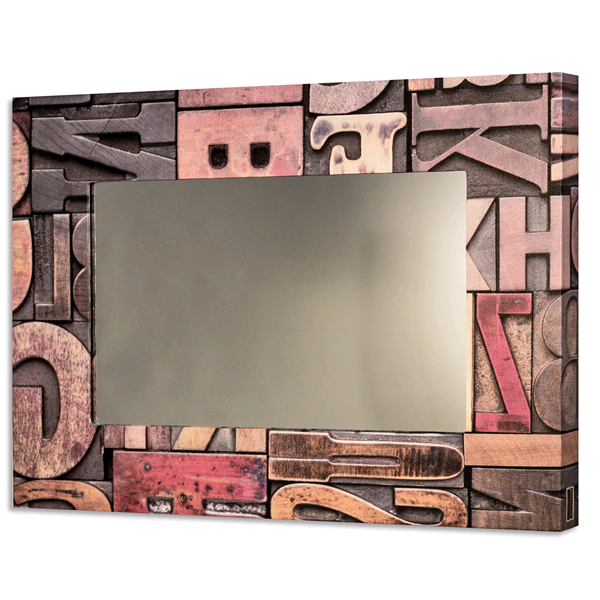 Espejo con estructura de madera, conformado y cubierto con lona impresa de alta definición.