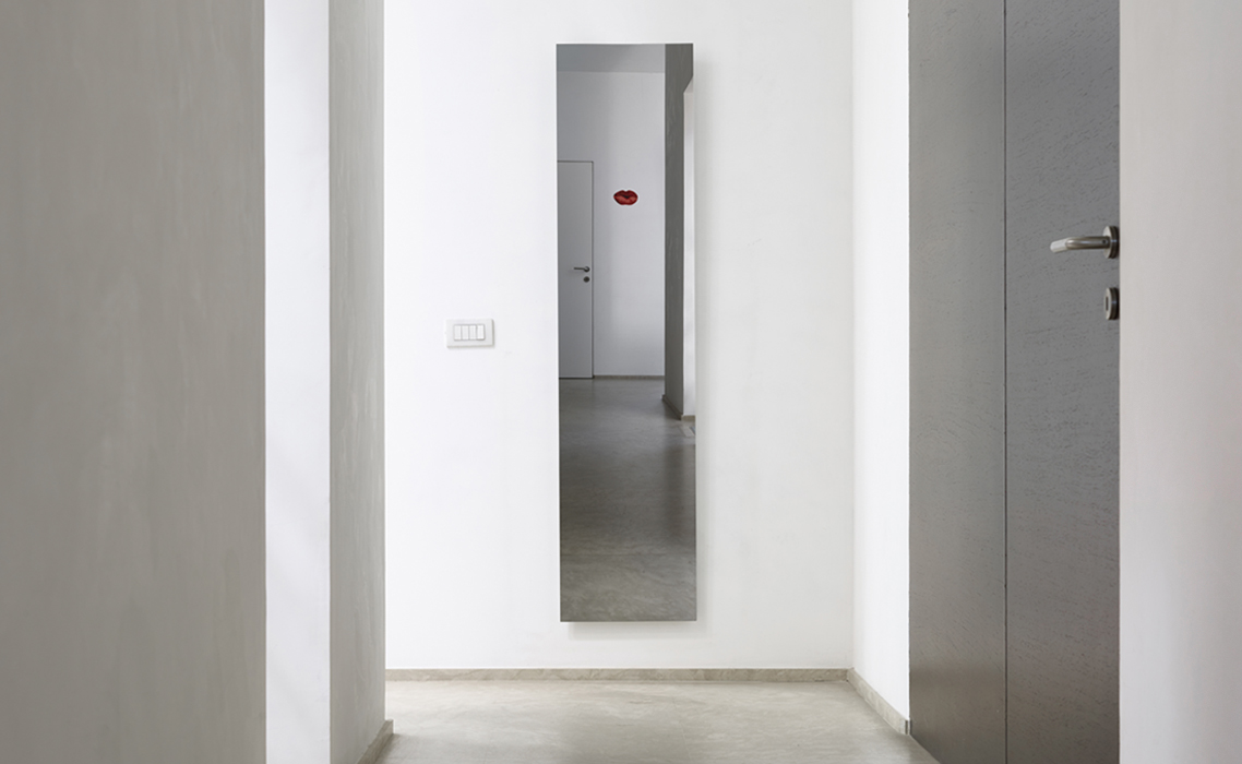 Lipstick es un espejo diseñado por Bruno Rainaldi para Opinion Ciatti. Espejo con detalle en serigrafía roja.