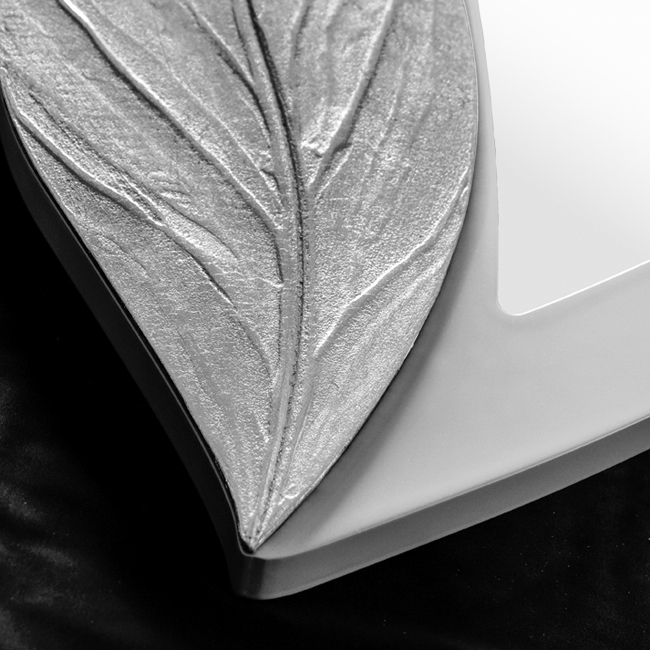 Espejo lacado en forma de marfil con detalles decorados a mano, material y pan de plata, colocación horizontal / vertical.