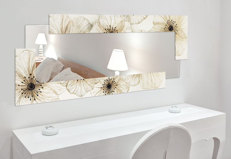 ESPEJO cm190x80 (espejo 44x170 cm) Variante MARFIL Detalles de resina de composición floral decorada a mano sobre estructura descompuesta texturizada con espejo en voladizo, poste horizontal / vertical, acabado extra brillante.