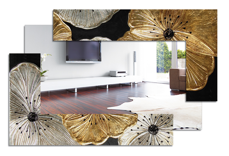 ESPEJO cm 120x80 (espejo 100x44 cm) ORO variante Arreglo floral detalles de resina decorados a mano en estructura descompuesta texturizada con espejo en voladizo, poste horizontal / vertical, acabado extra brillante.