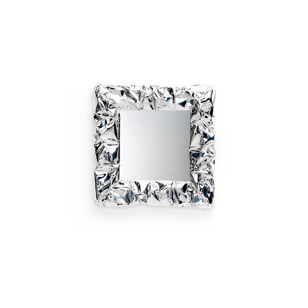 Espejo con marco en aluminio cromado arrugado a mano. Artesanía, cada pieza es única.