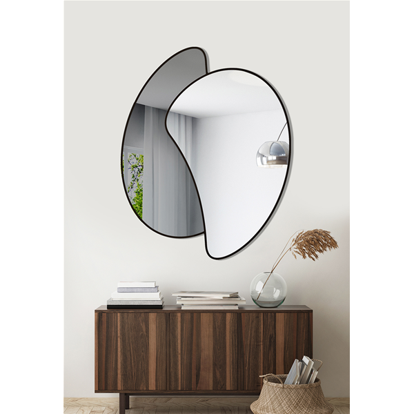 Espejo de forma minimalista, compuesto por dos espejos, uno de ellos ahumado. Acabado lacado.