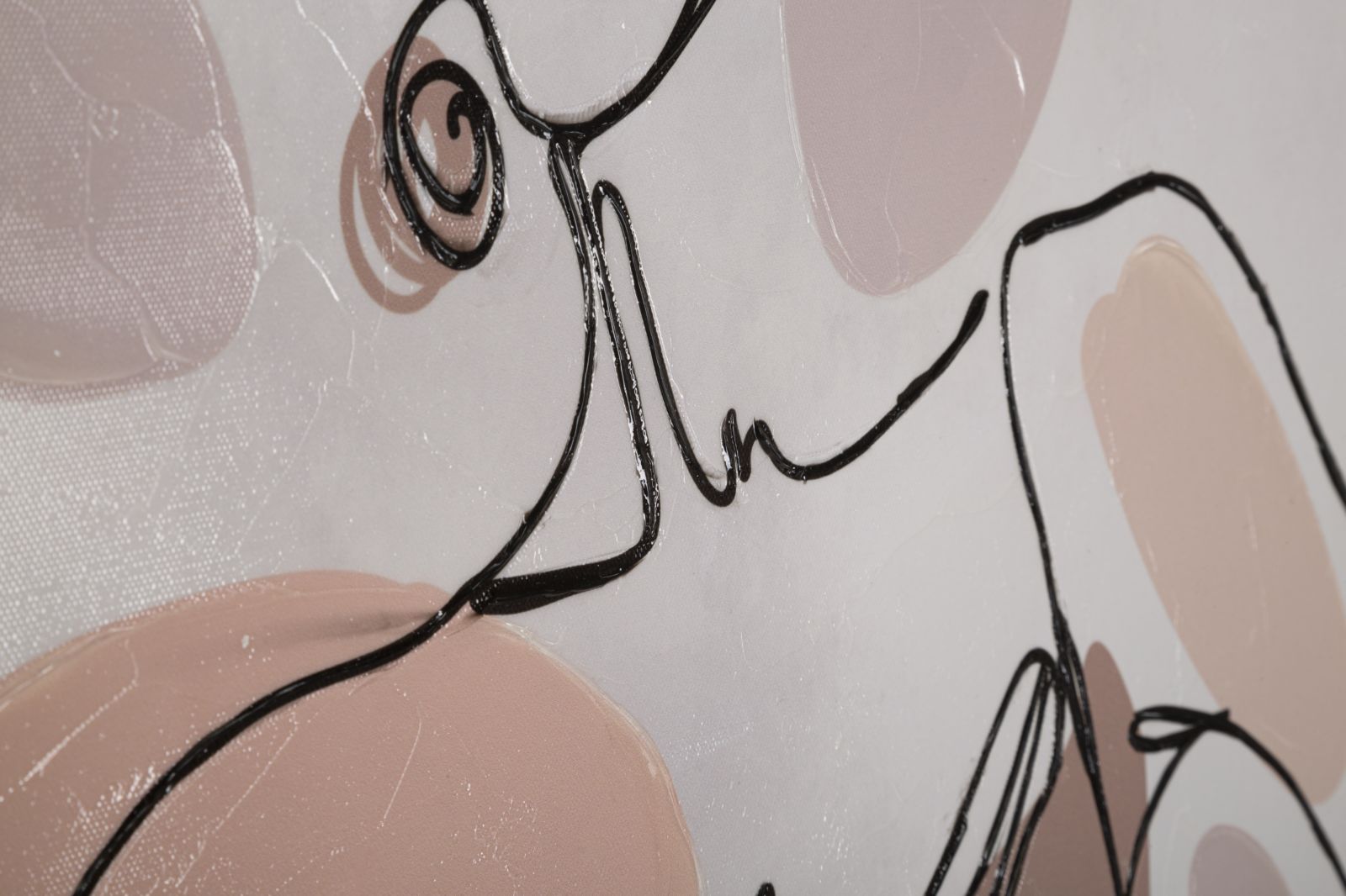 Estampa pintada sobre lienzo con marco de madera que representa a una mujer con tonos mínimos