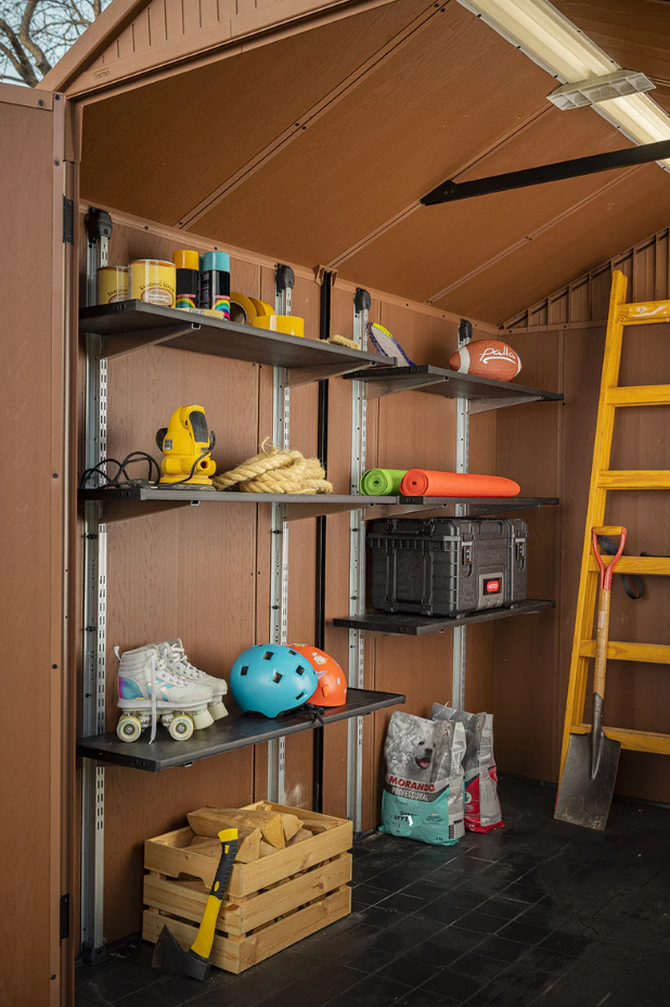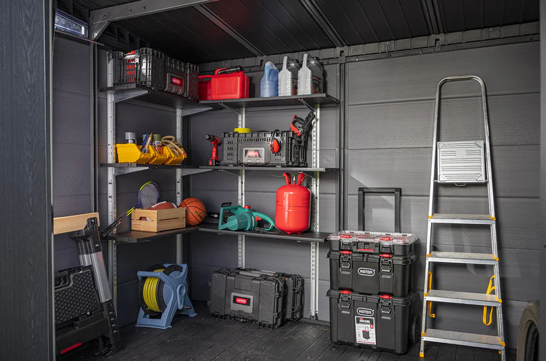 El kit de estanterías Keter es el sistema ideal para mantener ordenado su garaje, sótano, trastero o almacén.