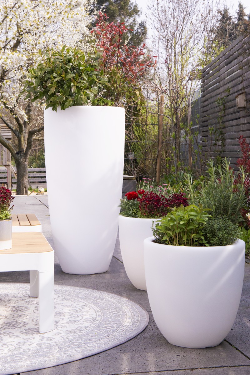 El jarrón más grande de la serie Curvy impresiona por su diseño elegante y con estilo. Deje que sus plantas se conviertan en una atracción radiante en el interior o en el exterior y cree una atmósfera de absoluto bienestar. Los jarrones inspiran individualmente o en combinaciones de diferentes tamaños y colores.