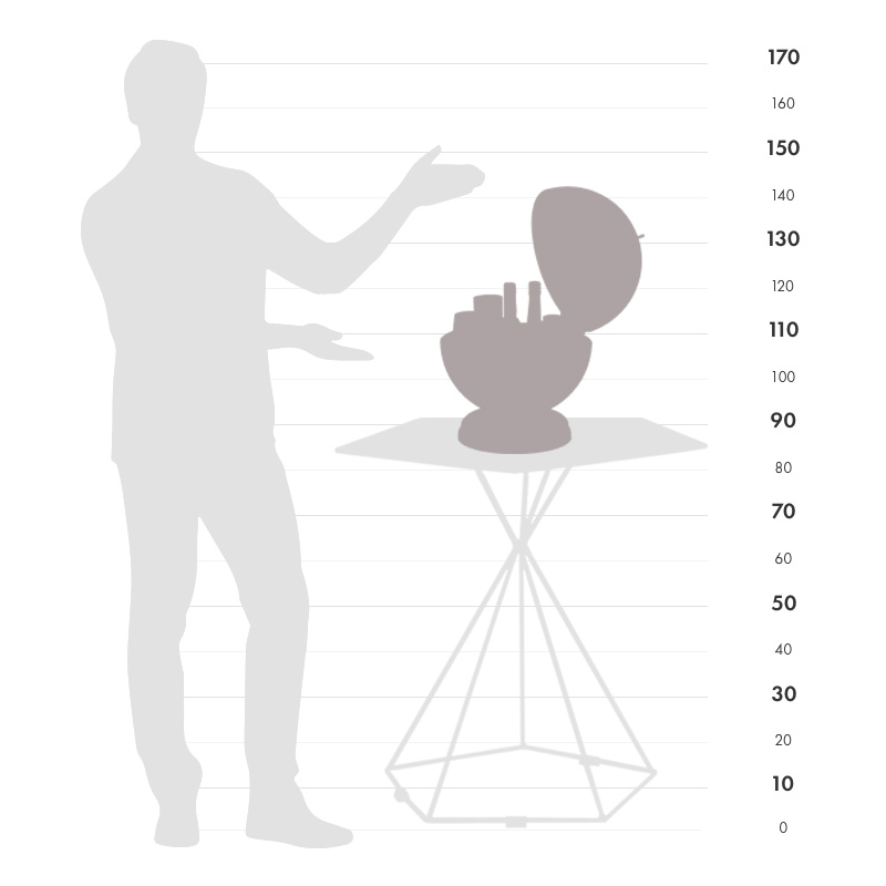 Como una concha marina que revela la pureza y la maravilla de una perla, este globo terráqueo de mesa se abre para revelar sus accesorios de bar y botellas de licor favoritos, sorprendiendo a todos los invitados. El interior del globo puede albergar cómodamente de 2 a 3 botellas y 9 vasos, ofreciendo la posibilidad de servir las mejores veladas con amigos con estilo.