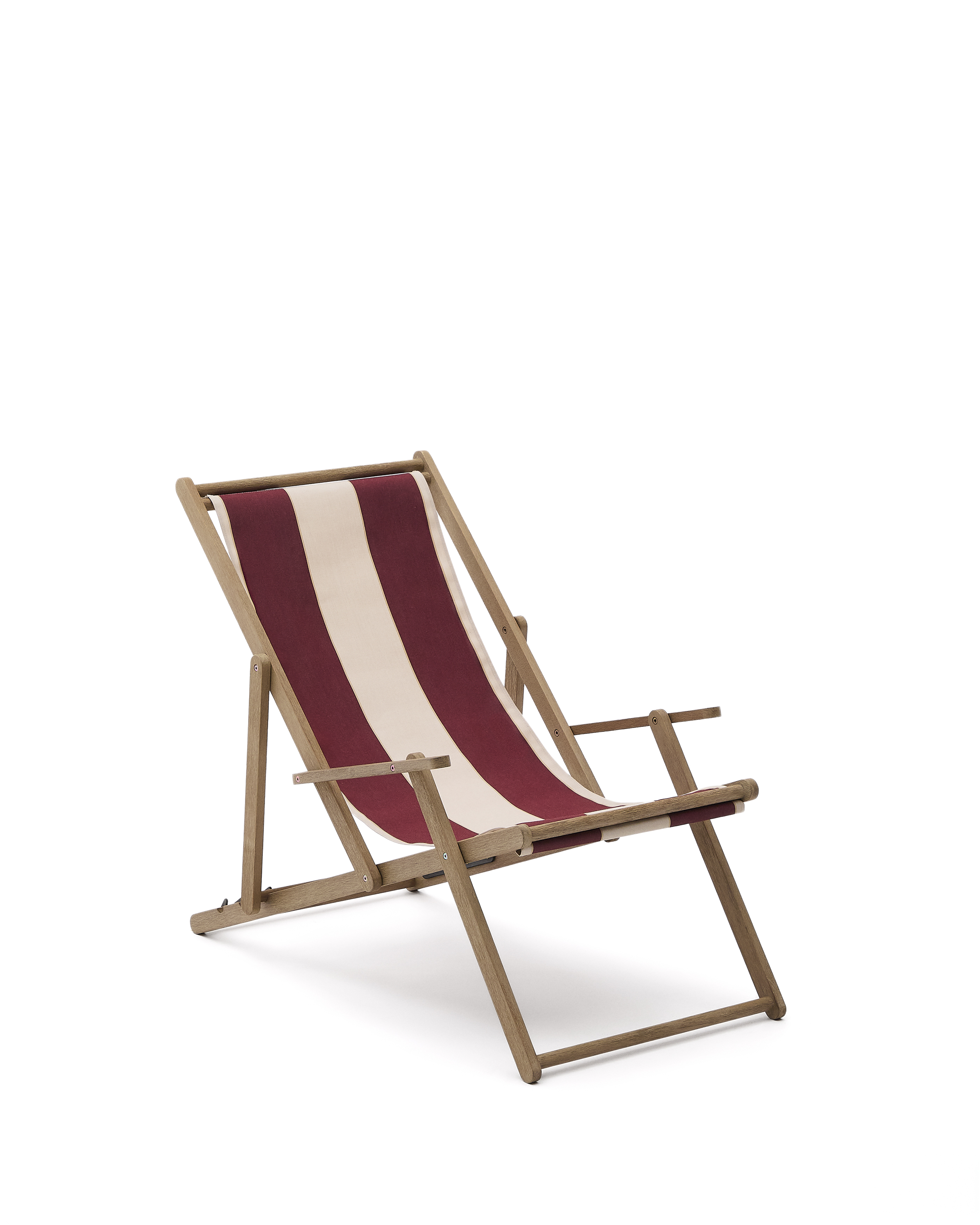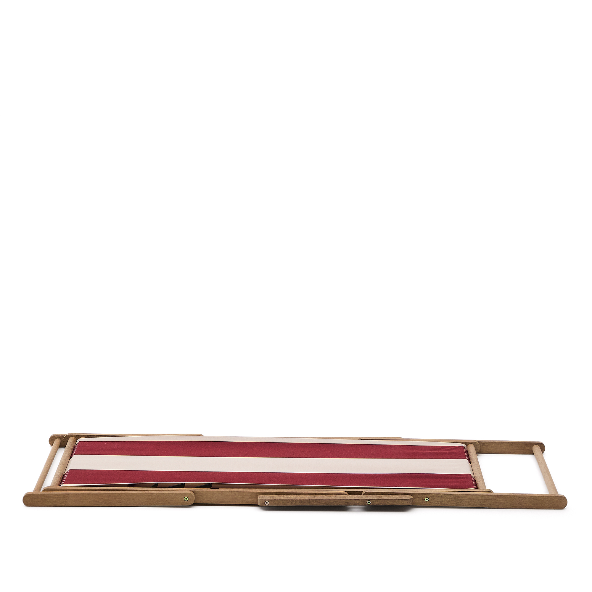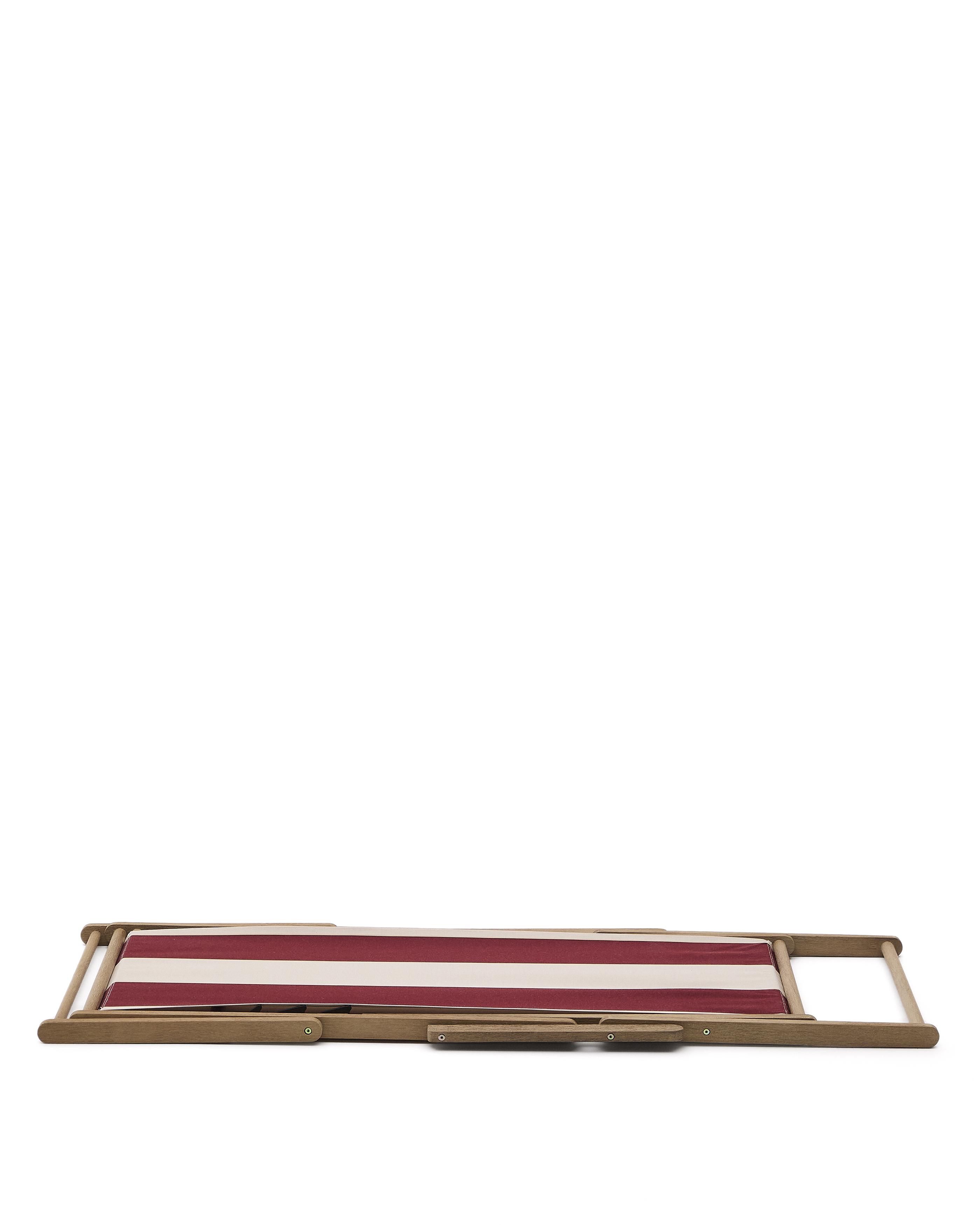 Hamaca plegable de exterior Vilara en rayas burdeos y beige fabricada 100% en madera maciza de acacia FSC.