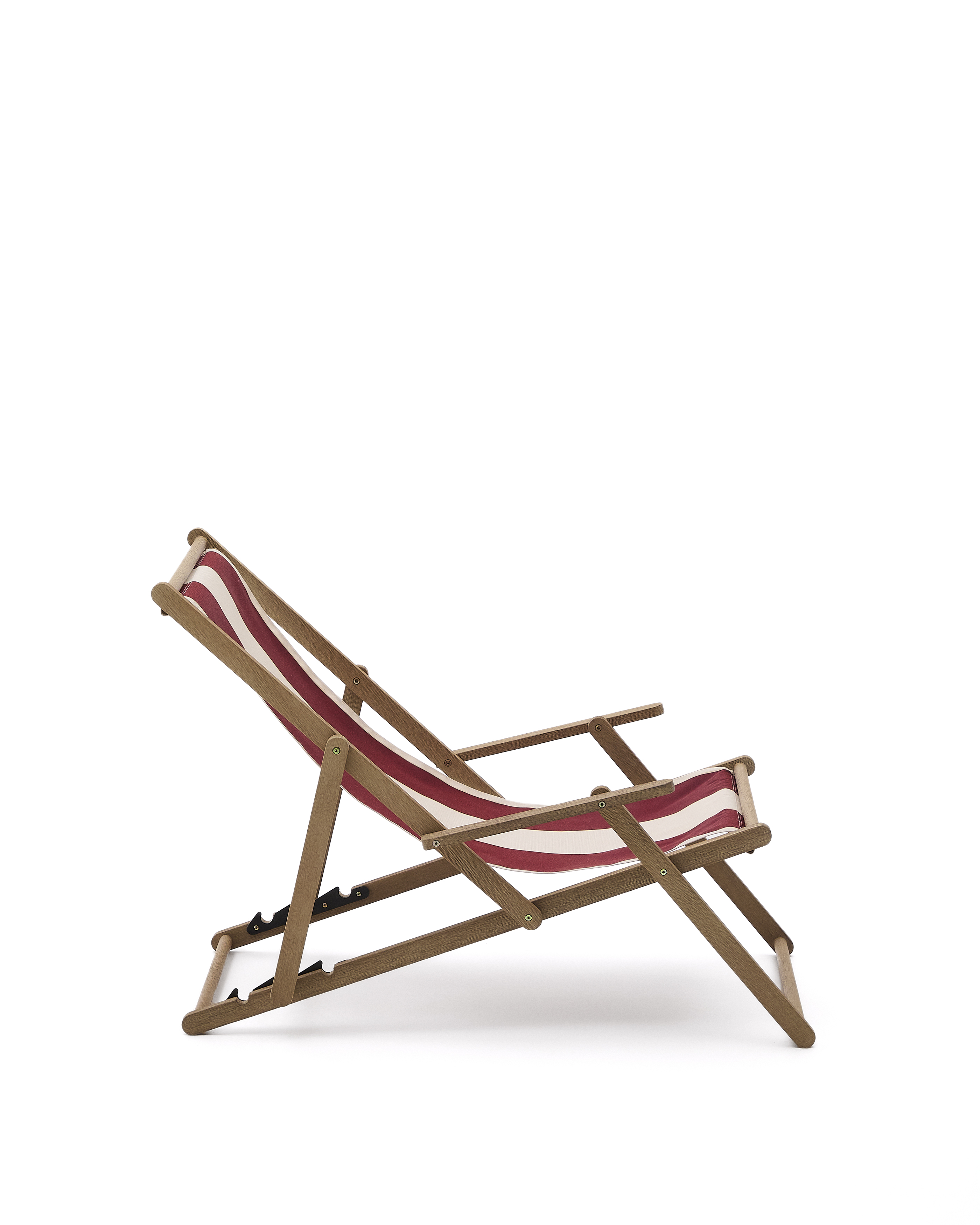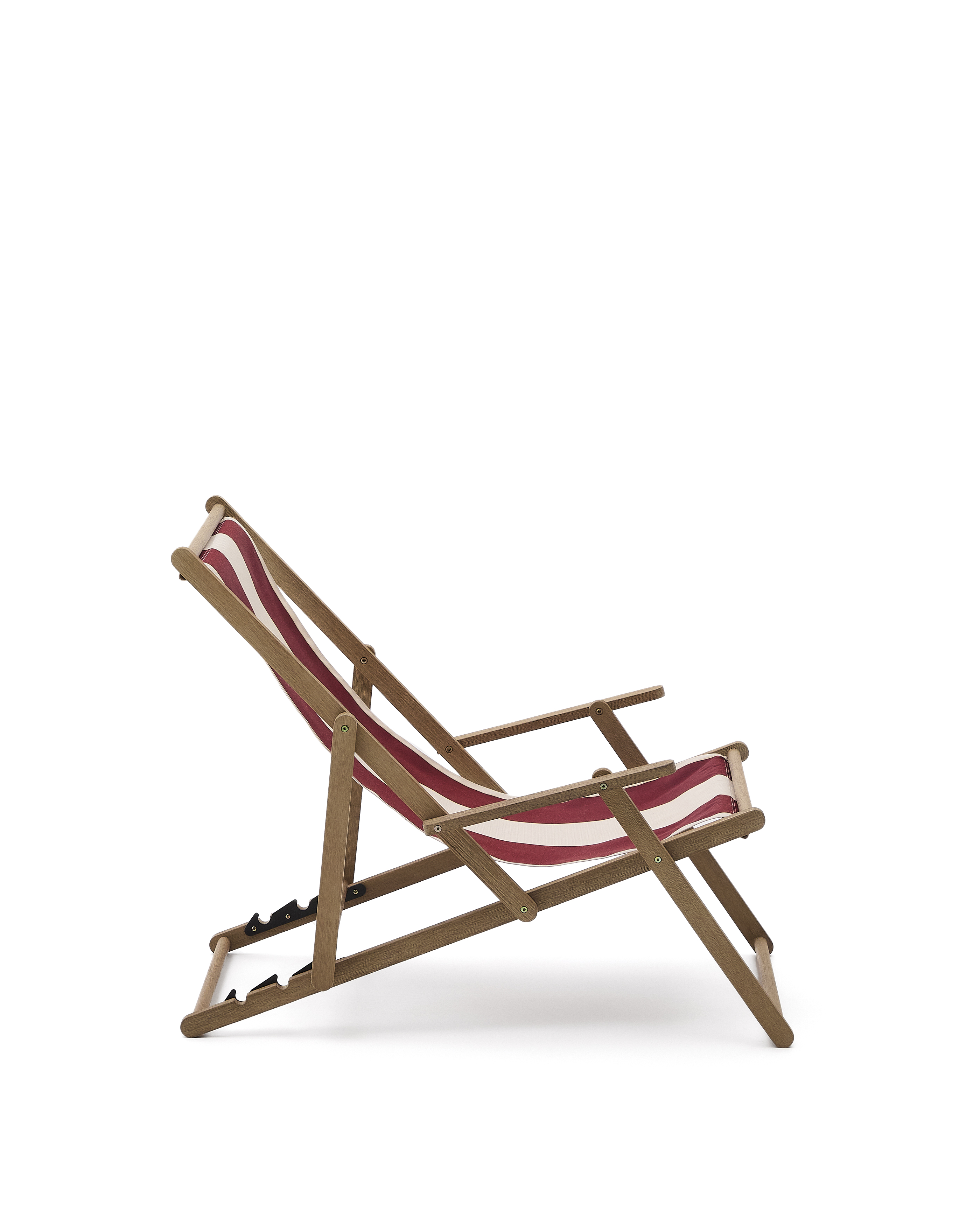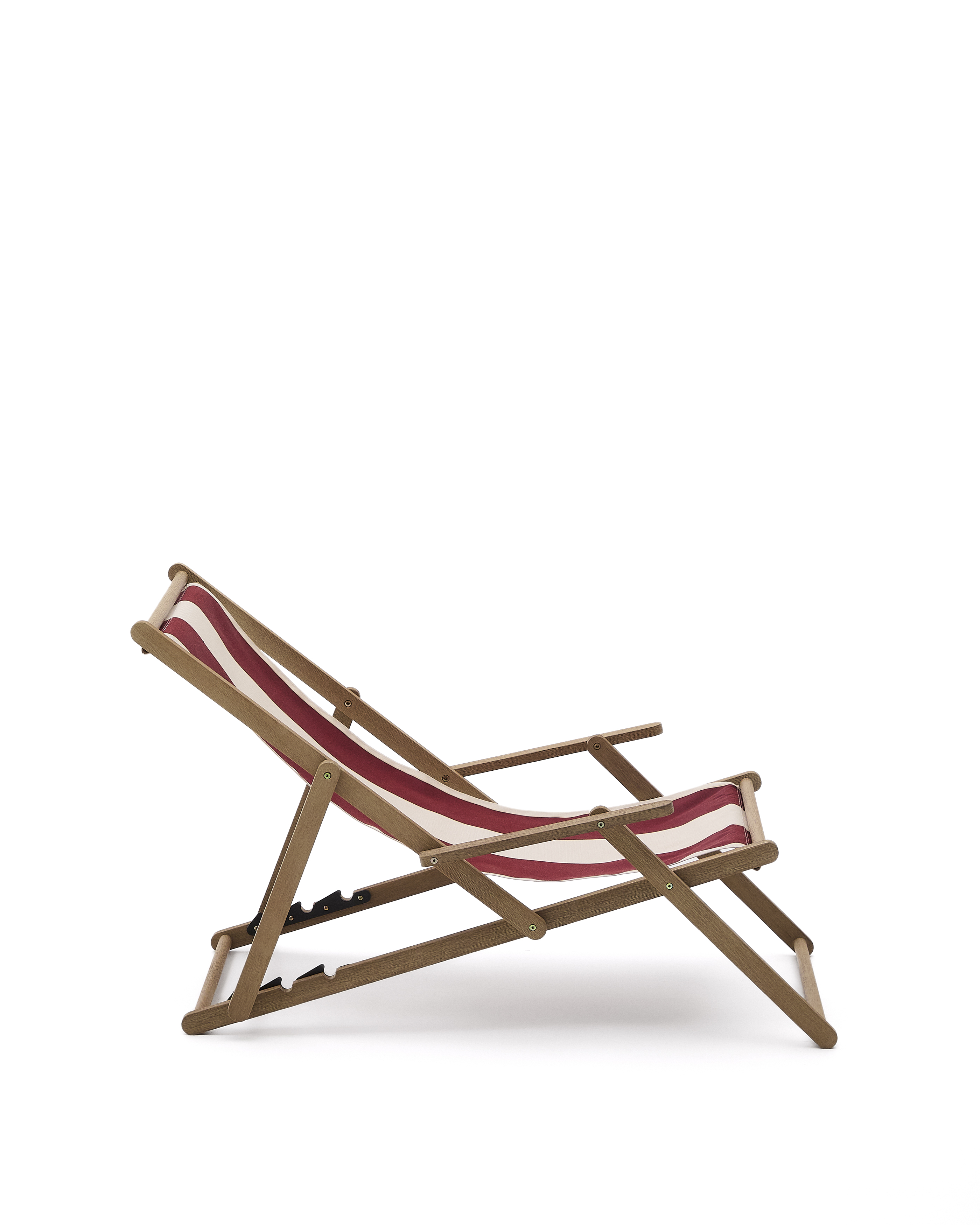 Hamaca plegable de exterior Vilara en rayas burdeos y beige fabricada 100% en madera maciza de acacia FSC.
