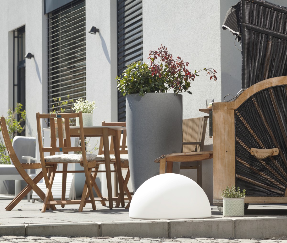 Tan simple pero tan hermoso: el nuevo Shining Sunrise. Lleva el amanecer a casa y disfrútalo cuando quieras. Con su diseño moderno, la luz crea un ambiente perfecto tanto en interiores como en exteriores. Dependiendo de sus preferencias, también puede combinar los hemisferios en los dos tamaños disponibles.