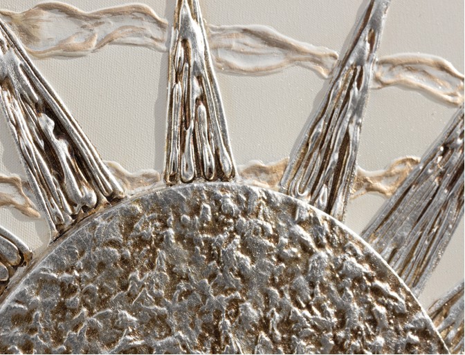 Doble estructura elle decorada a mano con detalles de resina sobre textura con elemento central en relieve.