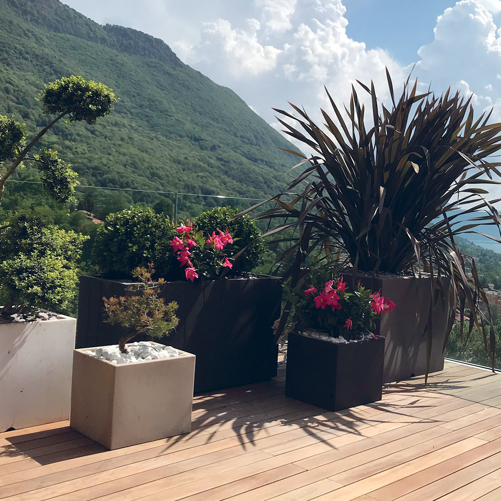 Cubotti Deep es un jarrón para exteriores que encaja en la categoría de muebles de exterior y muebles de diseño. El jarrón de jardín cúbico también disminuyó en altura, forma básica con superficie micro-moteada adecuada para la decoración en entornos modernos y refinados.