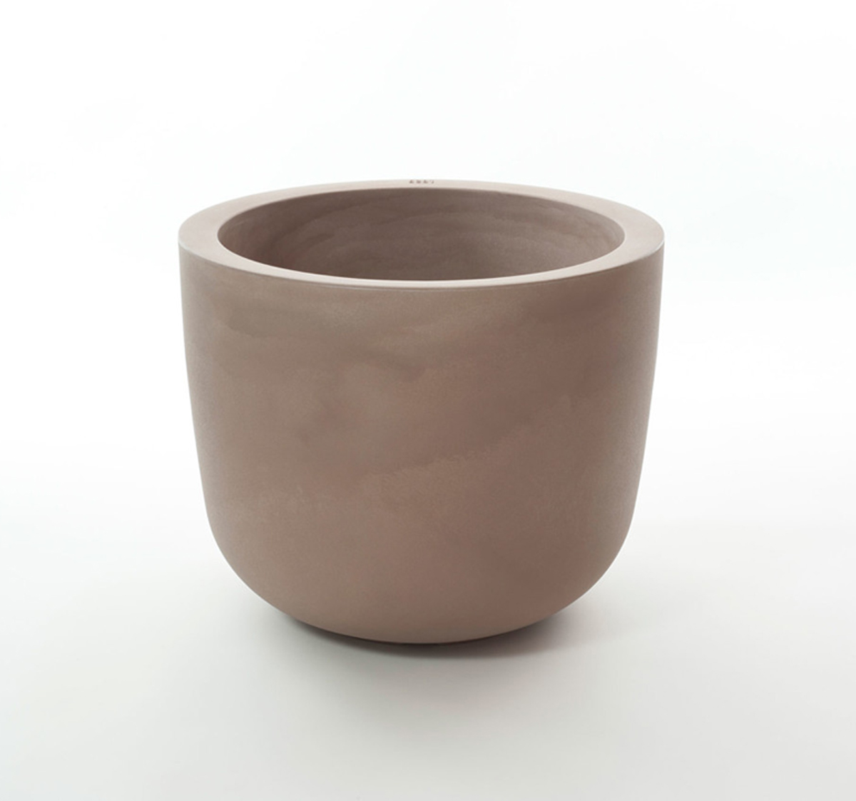 Jarrones al aire libre de inspiración arcaica, como cuencos tallados en madera. Líneas puras, para macetas de jardín con un diseño simple y discreto, que ya tiene el aroma clásico.