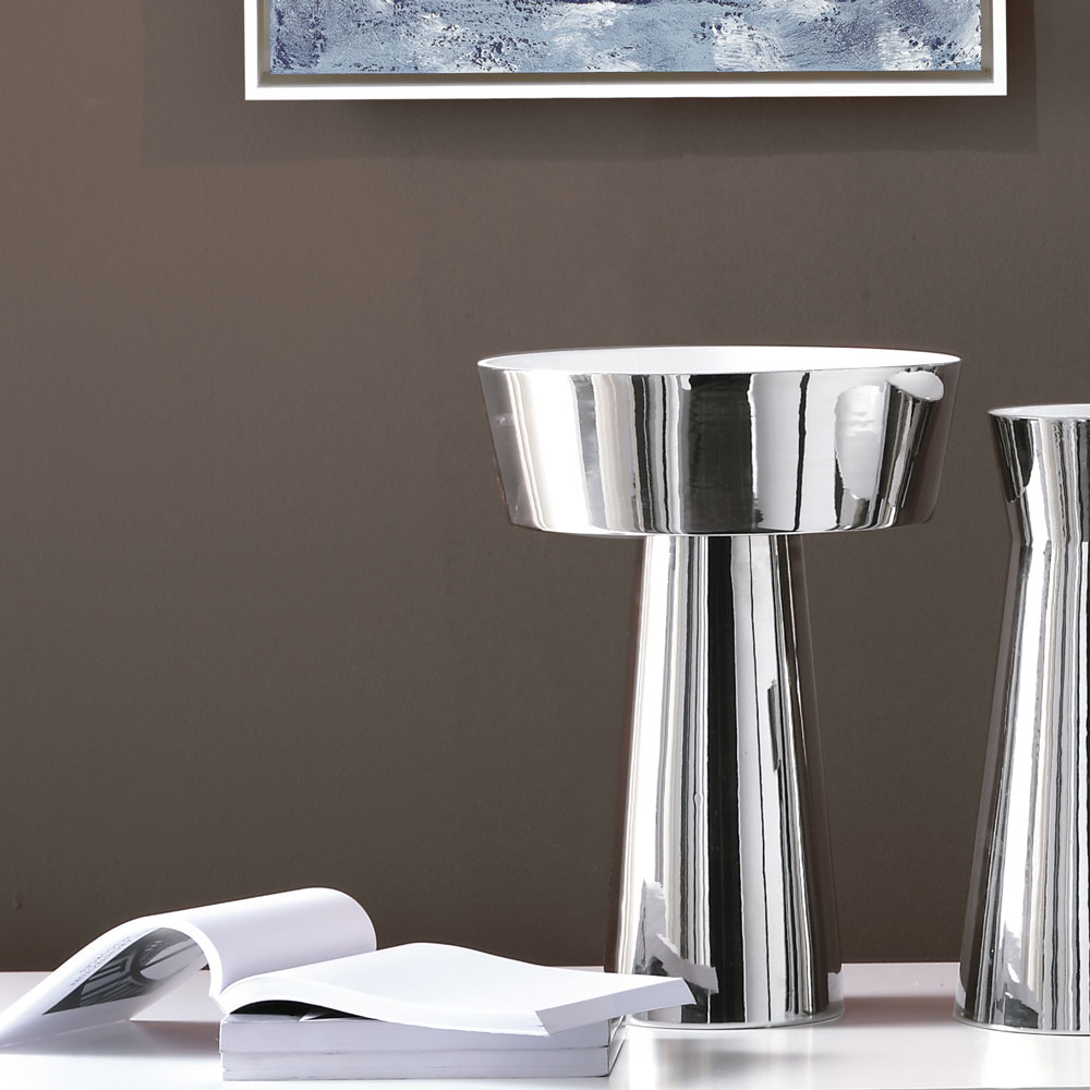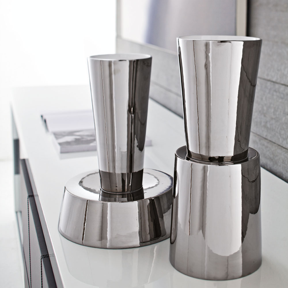 Jarrones de cerámica esmaltada blanca, negra o platino.