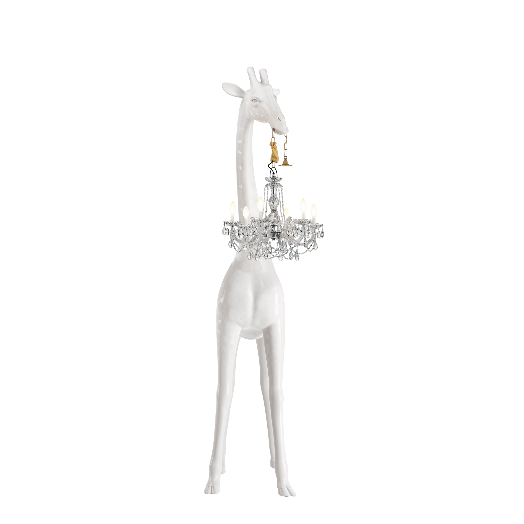 Diseñado por Marcantonio, Giraffe in Love M es una jirafa de 2,65 metros de altura que sostiene una lámpara de araña clásica de estilo Marie-Thérèse, totalmente impermeable y con certificación IP65. Audaz y elegante, será naturalmente el centro de atención de cualquier espacio en el que se coloque, tanto en interiores como en exteriores.