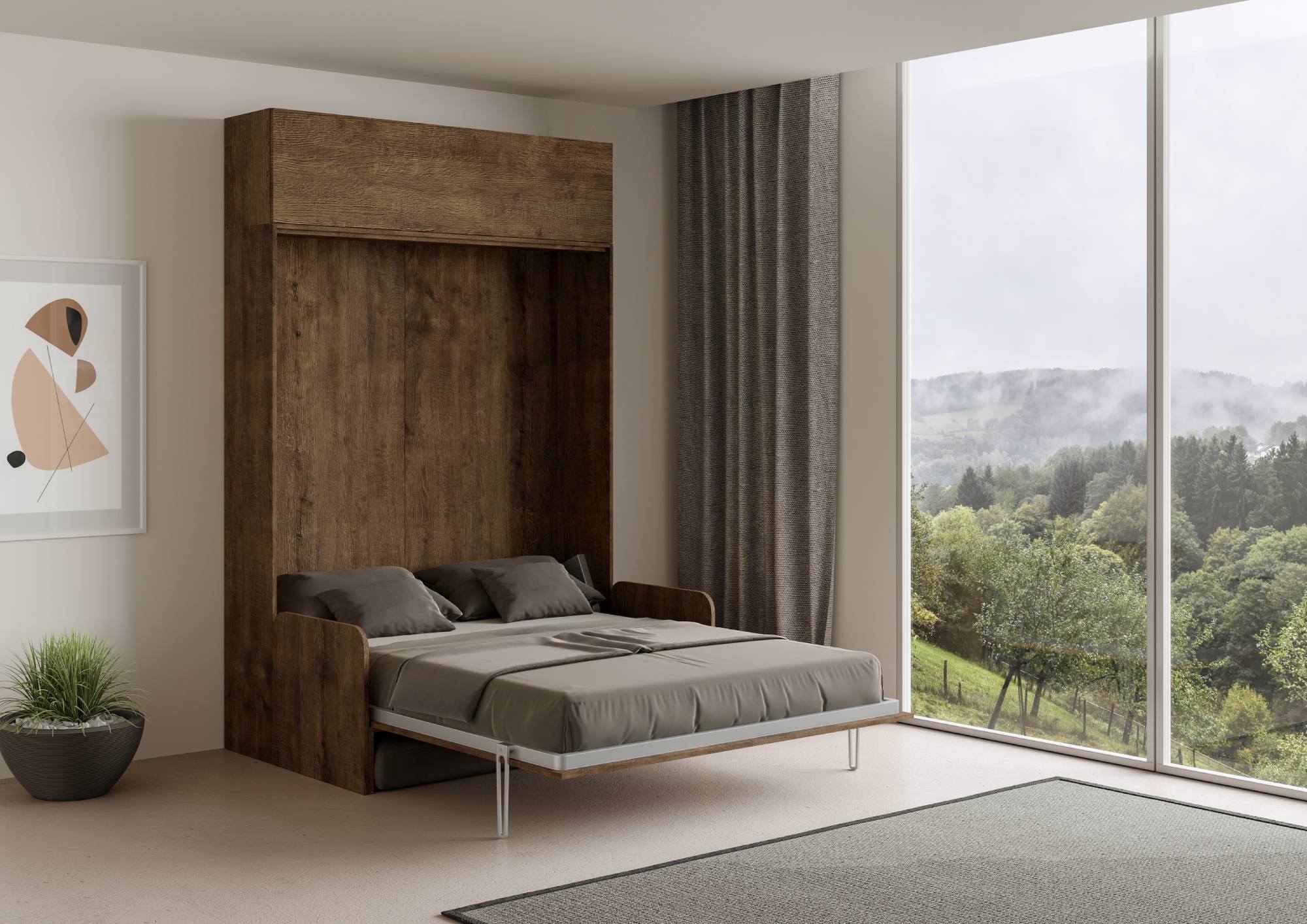| Material | Composición cama Kentaro Sofá matrimonial con módulo superior a pared. Una composición de diseño completa perfecta para una zona de día que se transforma en una cómoda zona de noche con facilidad y velocidad. La composición incluye una cama abatible verti |