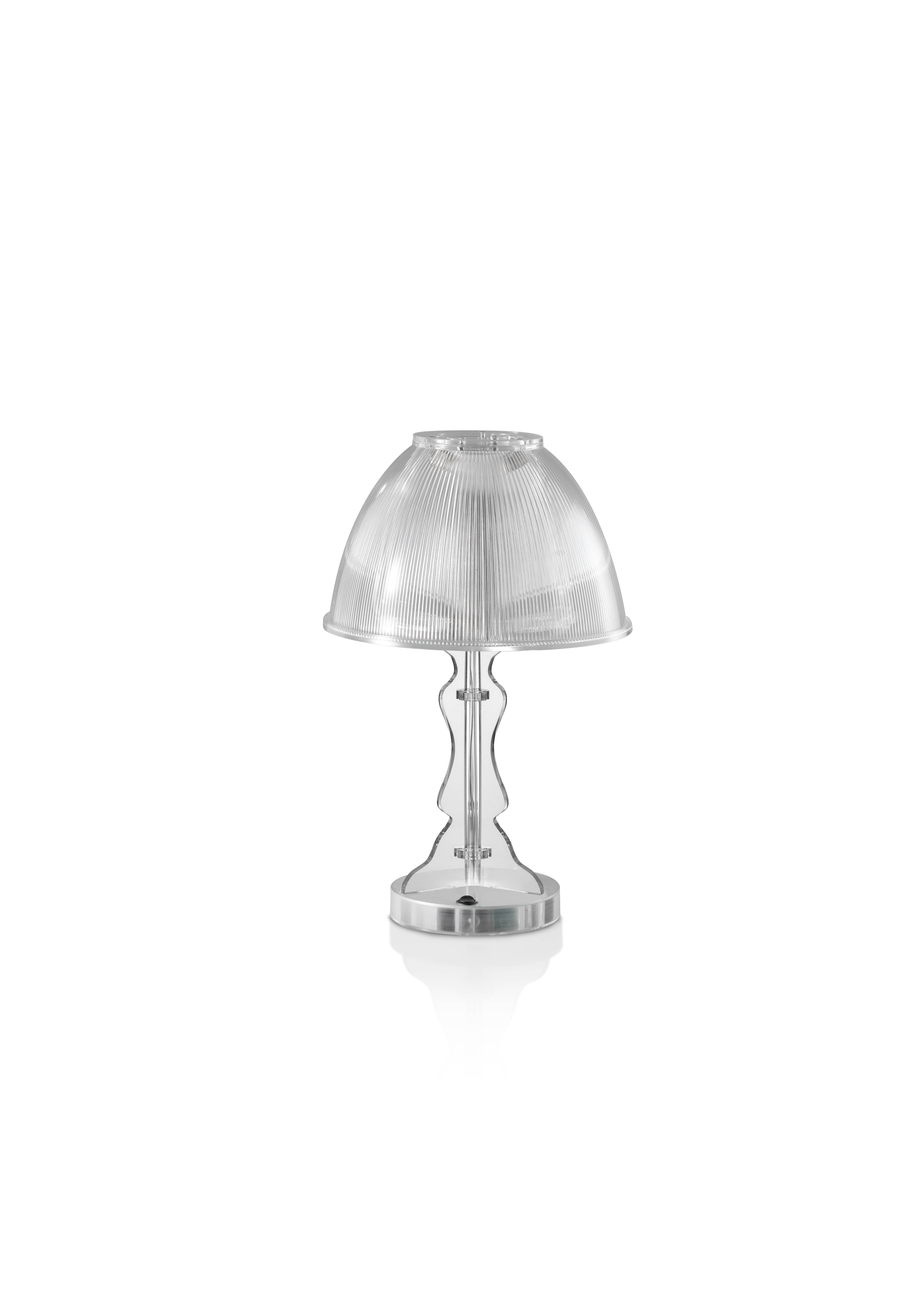 Lámpara de mesa de cristal acrílico transparente con tapa prismática, portalámparas transparente.