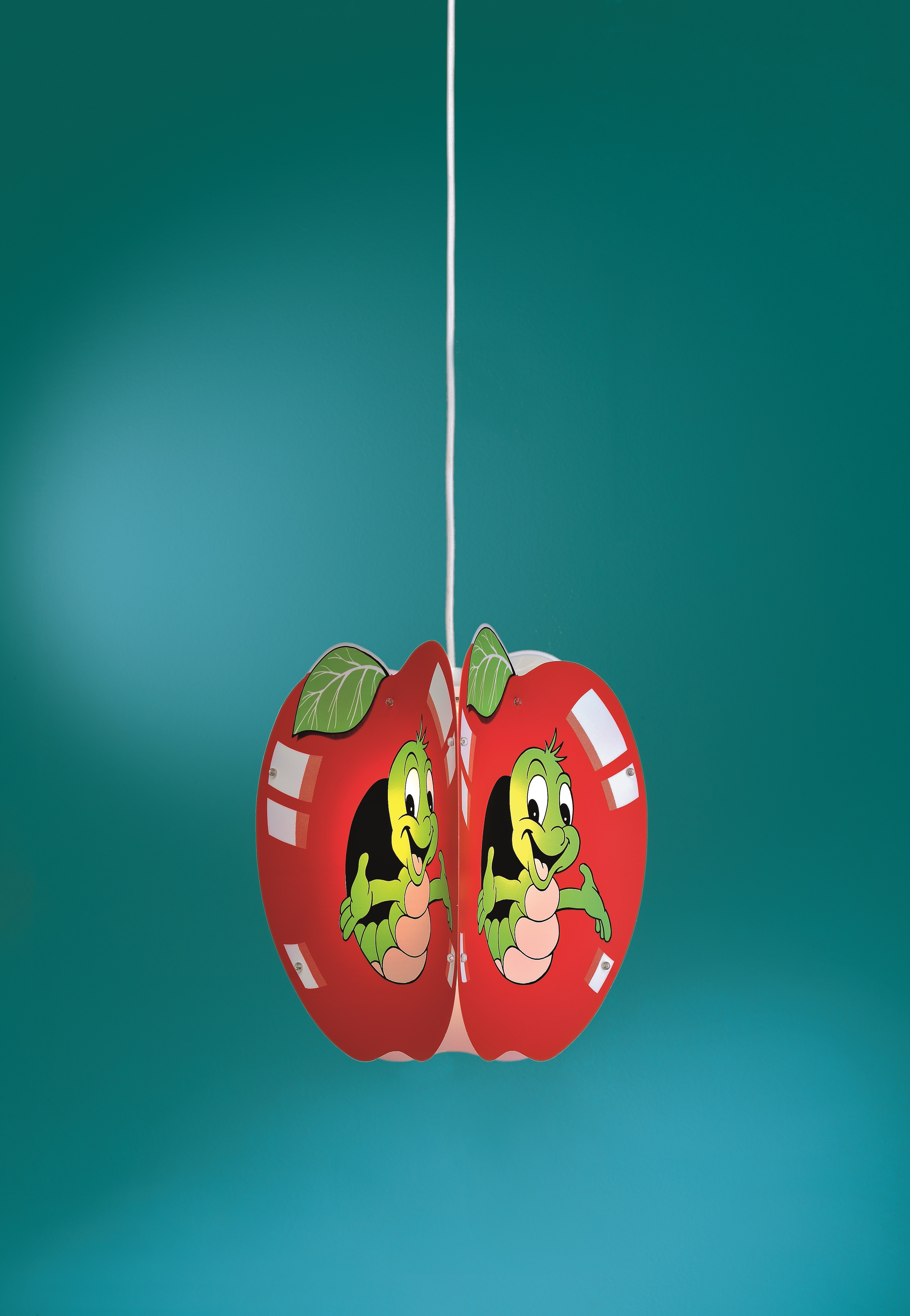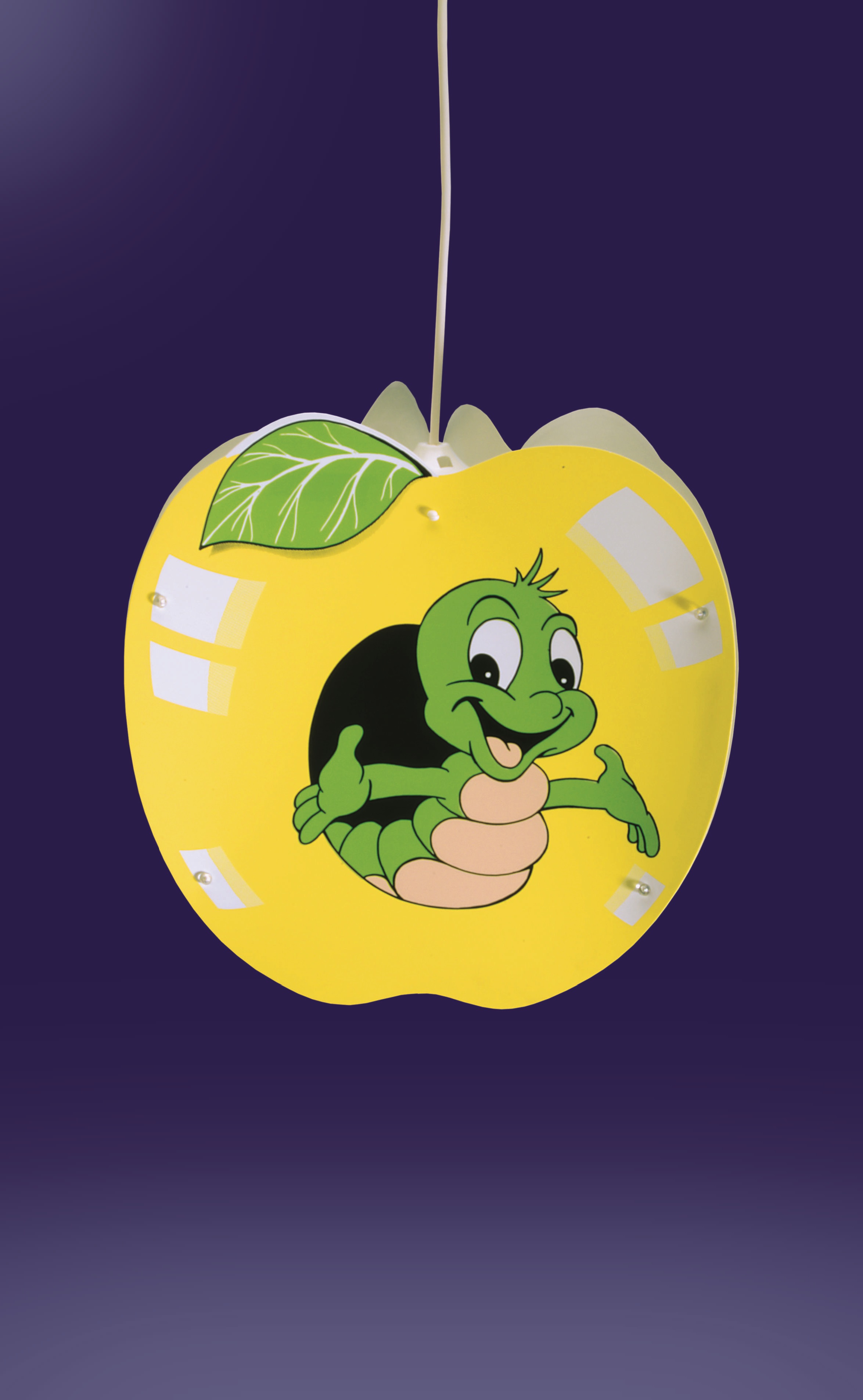 Una compañía agradable, con la mirada atenta de una simpática oruga que vive en una manzana colorida. Verde, blanco y rojo brillante son los colores de la diversión.