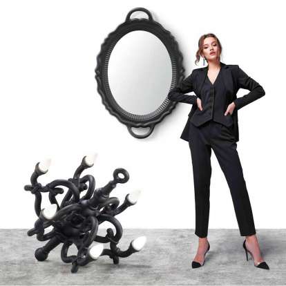 Fallen Chandelier es una lámpara inalámbrica recargable tamaño M adecuada para ambientes interiores, diseñada por Studio Job. Influenciado por las clásicas curvas de Thonet del siglo XIX, este objeto viaja a través del tiempo para ser el protagonista absoluto en cada lugar que habita y acompañarte en un sueño de elegancia atemporal. Se puede ajustar de forma remota por control remoto.