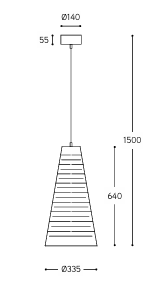 Lámpara colgante de diseño de forma cónica y esencial, realizada en acero esmaltado.