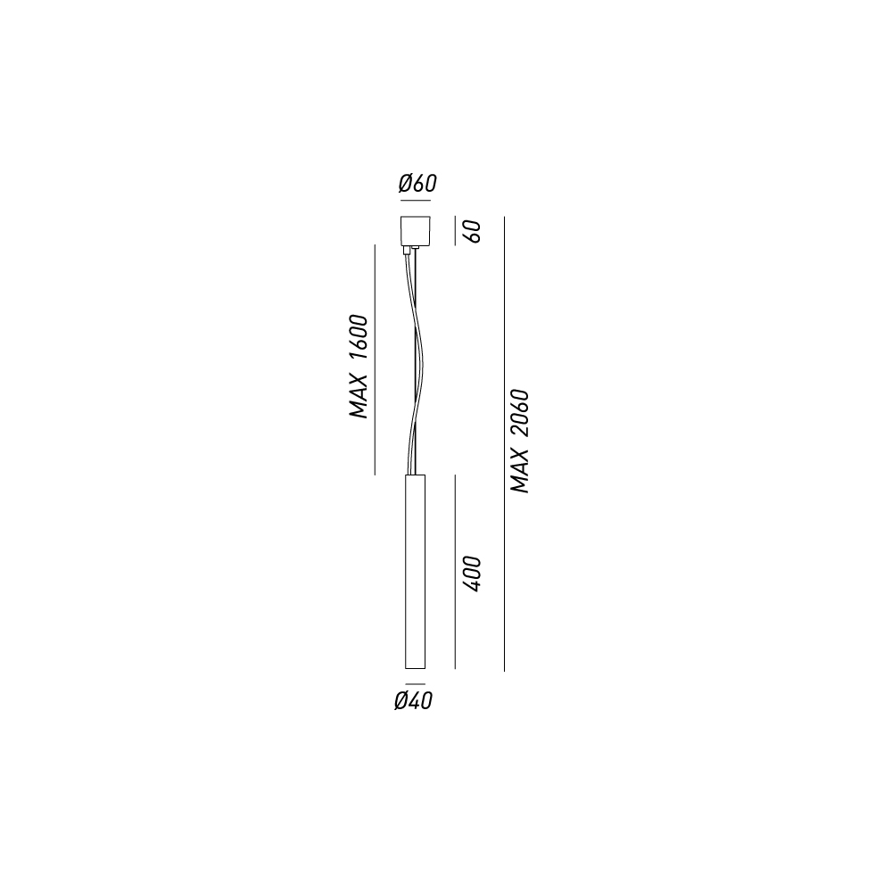 Difusor: Ø40 mm x h.400 mm; h.max suspensión 2060 mm; Roseta Ø60 mm