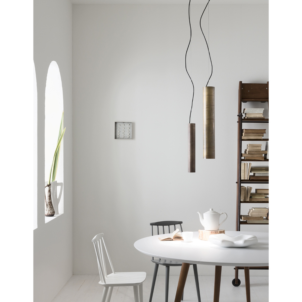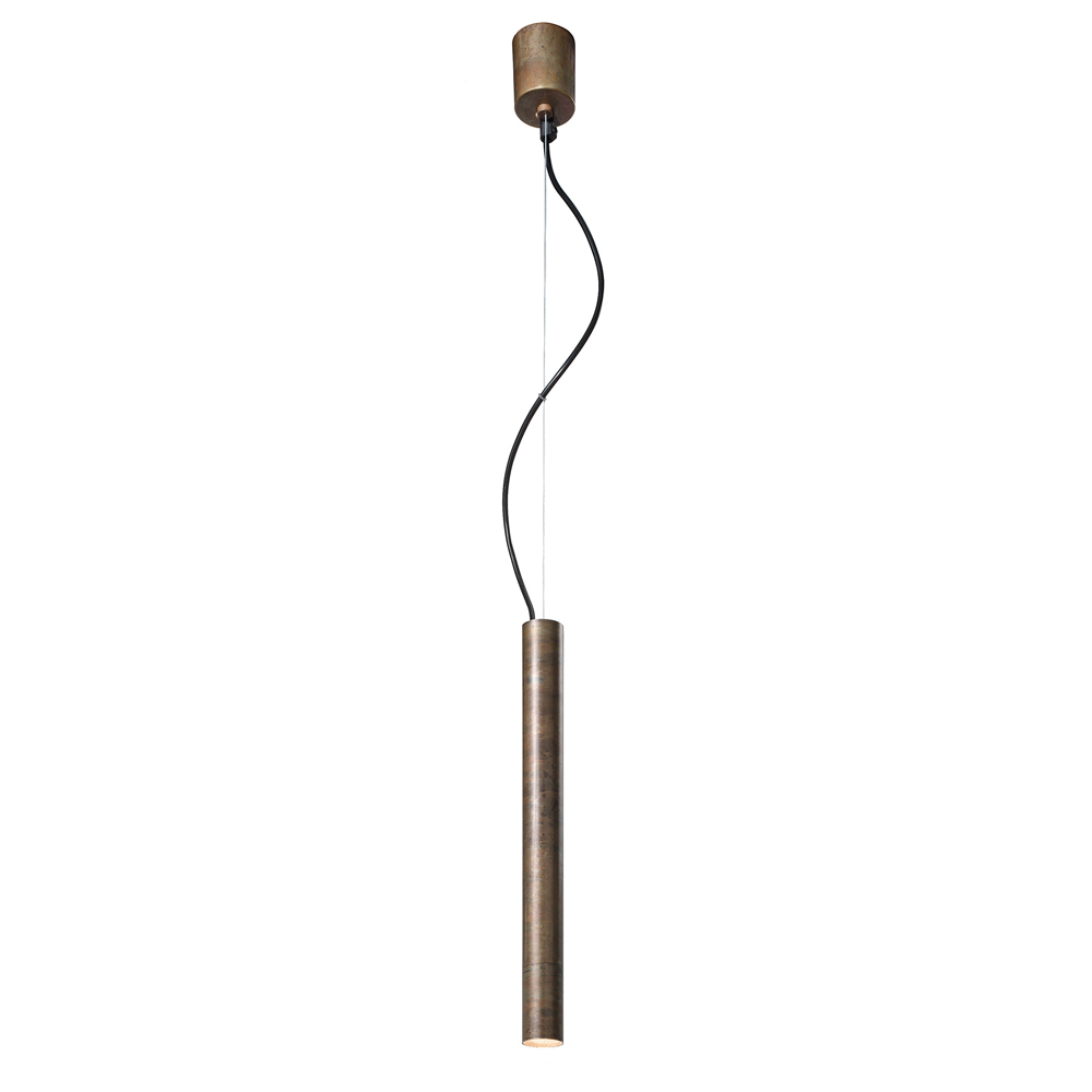 Lámpara de suspensión cilíndrica en latón o hierro.