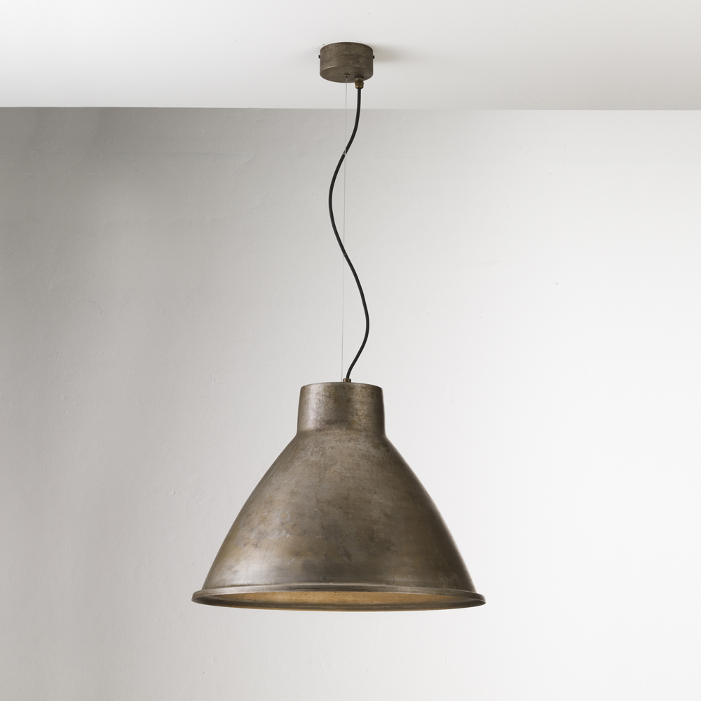 La colección Loft se compone de suspensiones, apliques, una lámpara de mesa y una lámpara de pie, todas en acabado de hierro con juntas de fundición de latón.