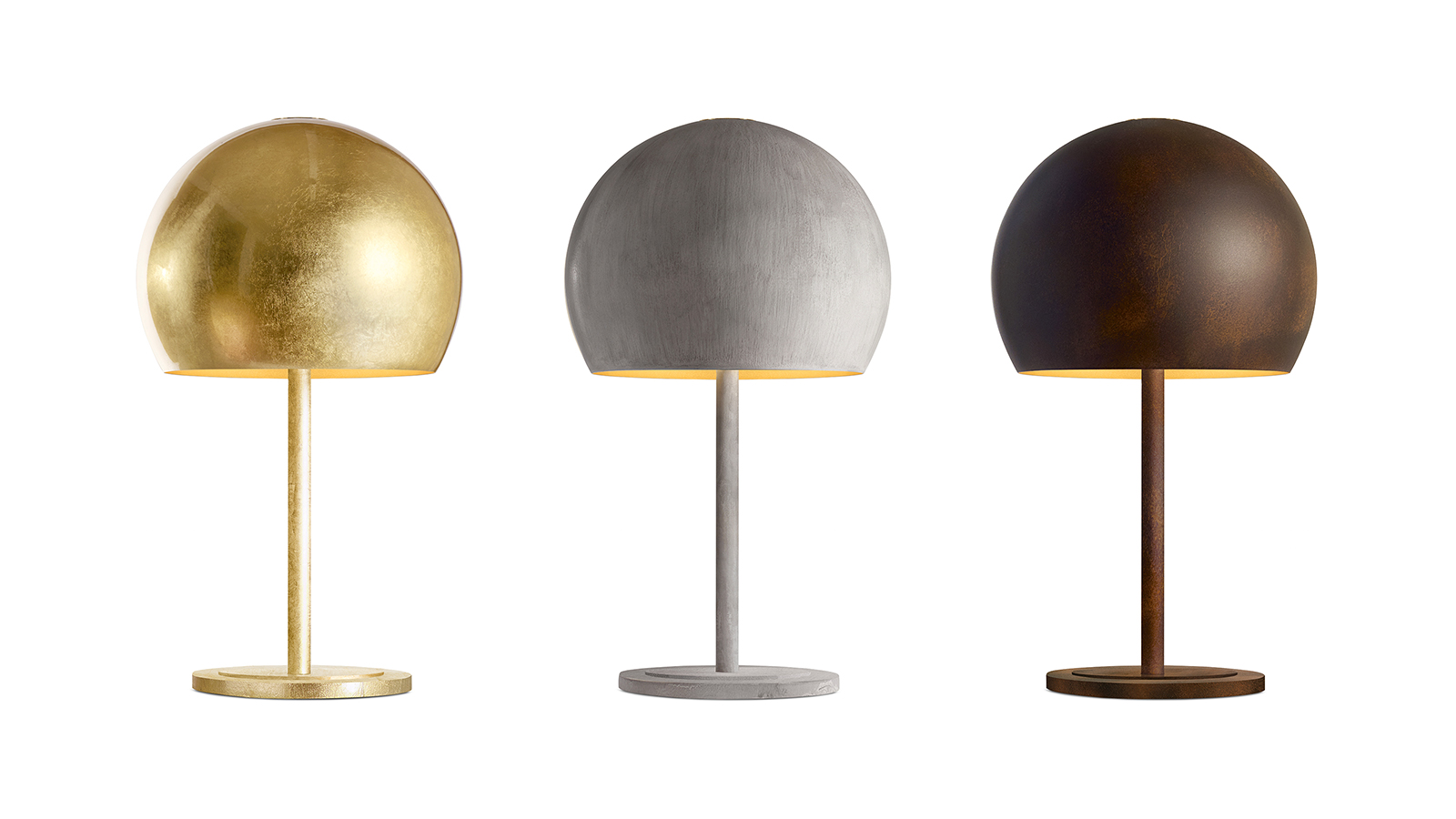 Luminaria de mesa. Estructura metálica, difusor de aluminio en acabado coordinado, 2 m de hilo eléctrico bipolar de tela negra con pulsador.