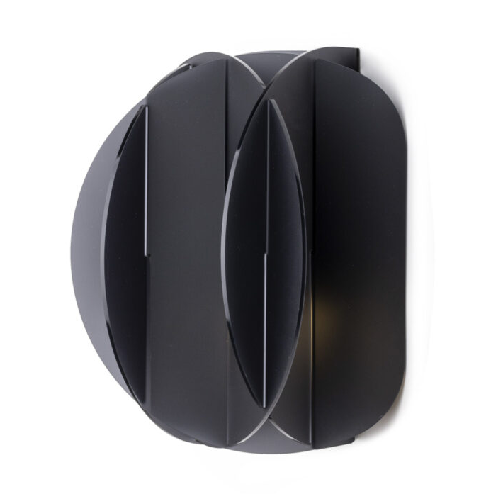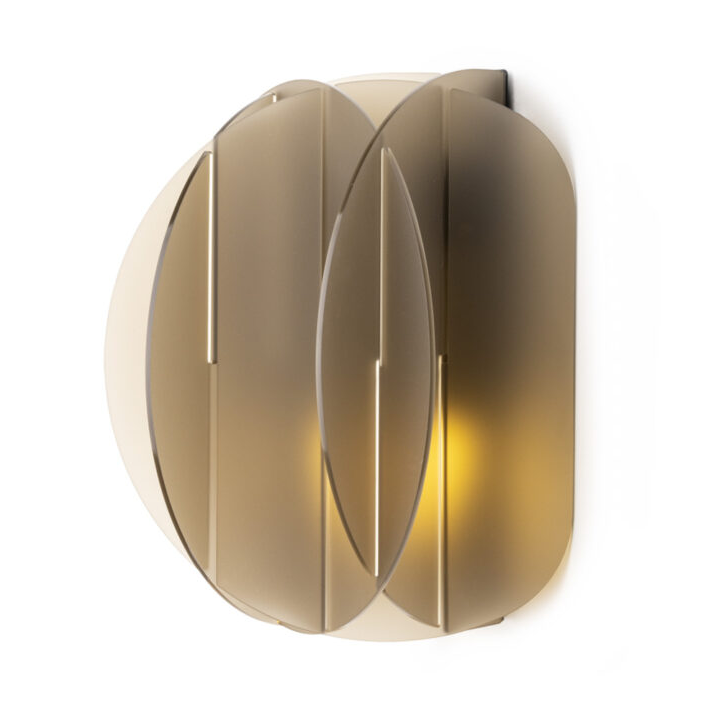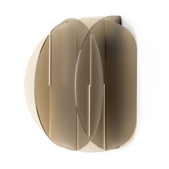 La luz pasa a través de una composición de semicírculos superpuestos en diferentes planos, creando un fascinante juego tridimensional de luces y sombras, capaz de transformar el ambiente con un toque inesperado.