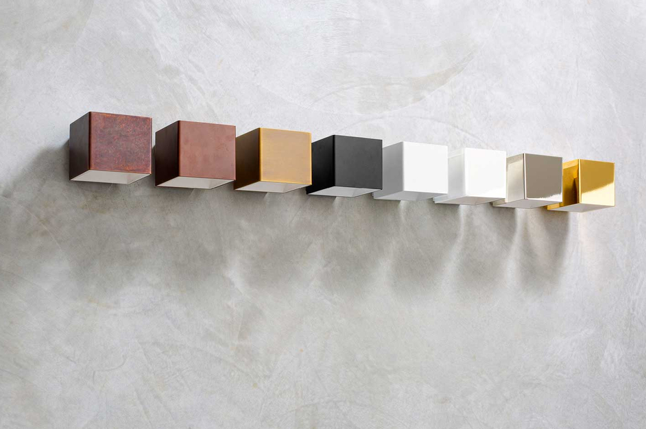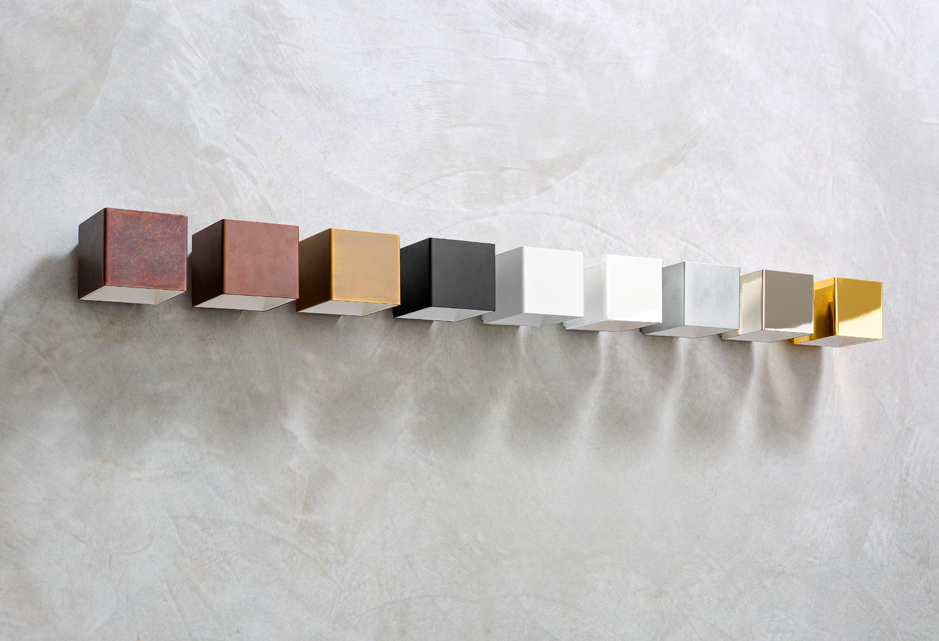 Disponible en una amplia gama de acabados: latón antiguo, corten, bronce, negro mate, blanco mate, blanco brillante, cromo y oro.