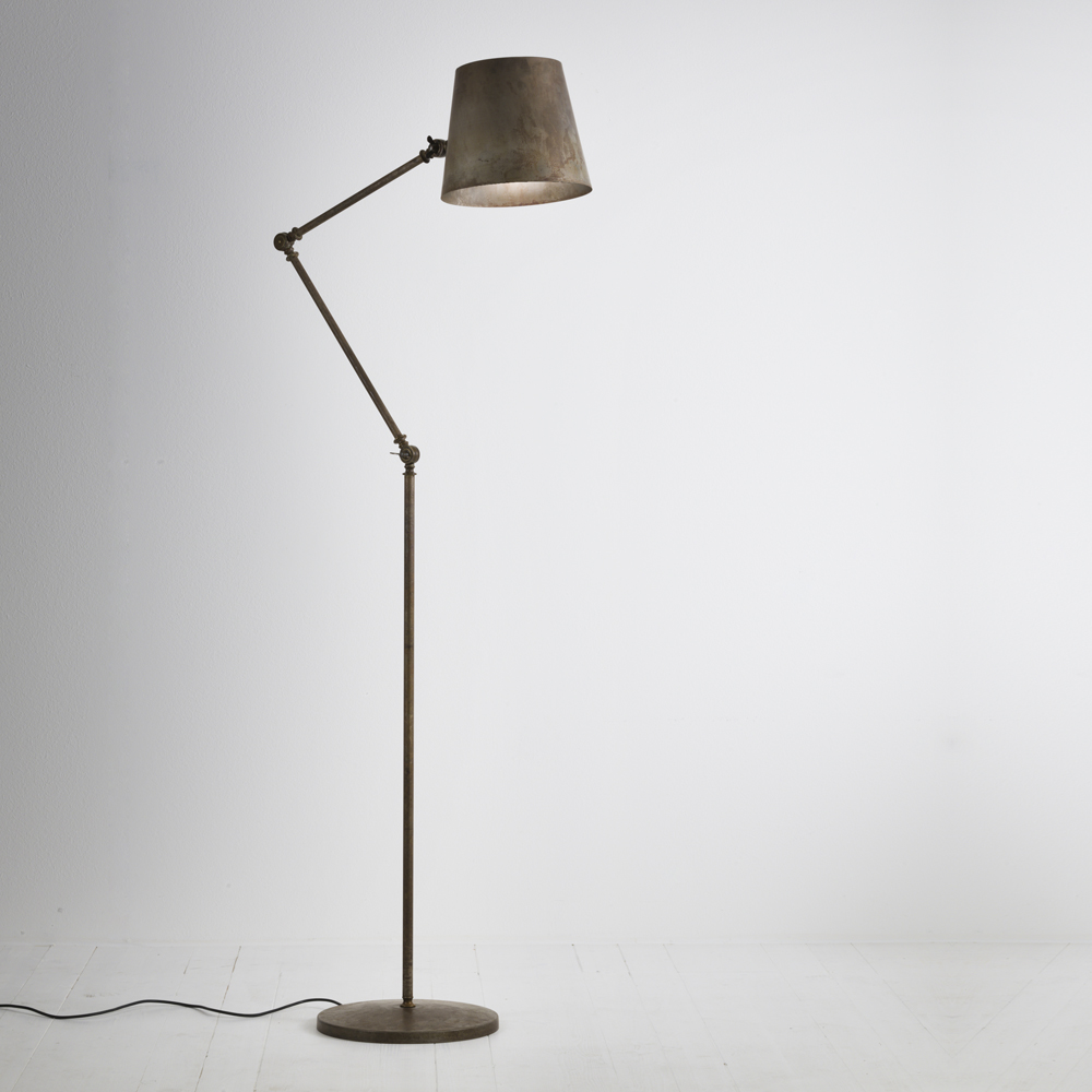 Elementos clásicos y referencias industriales se unen en una colección compuesta por suspensiones, apliques, una lámpara de mesa y una lámpara de pie, disponibles en acabado de hierro con juntas de fundición de latón.