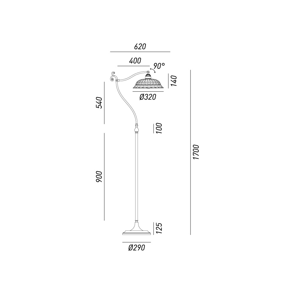 Altura de la lámpara: 170 cm.