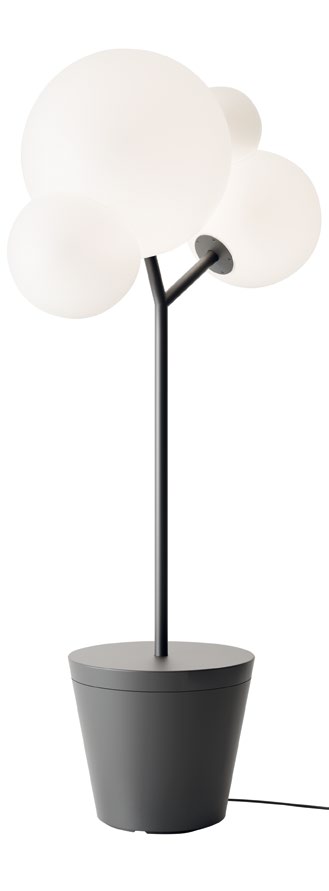Esta lámpara destaca por su forma de "rama de luz", compuesta por múltiples difusores LED integrados y ajustables , alimentados por batería. Cada punto de luz es regulable mediante control táctil y orientable para personalizar el efecto de iluminación.