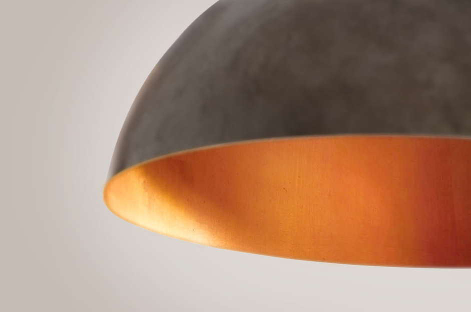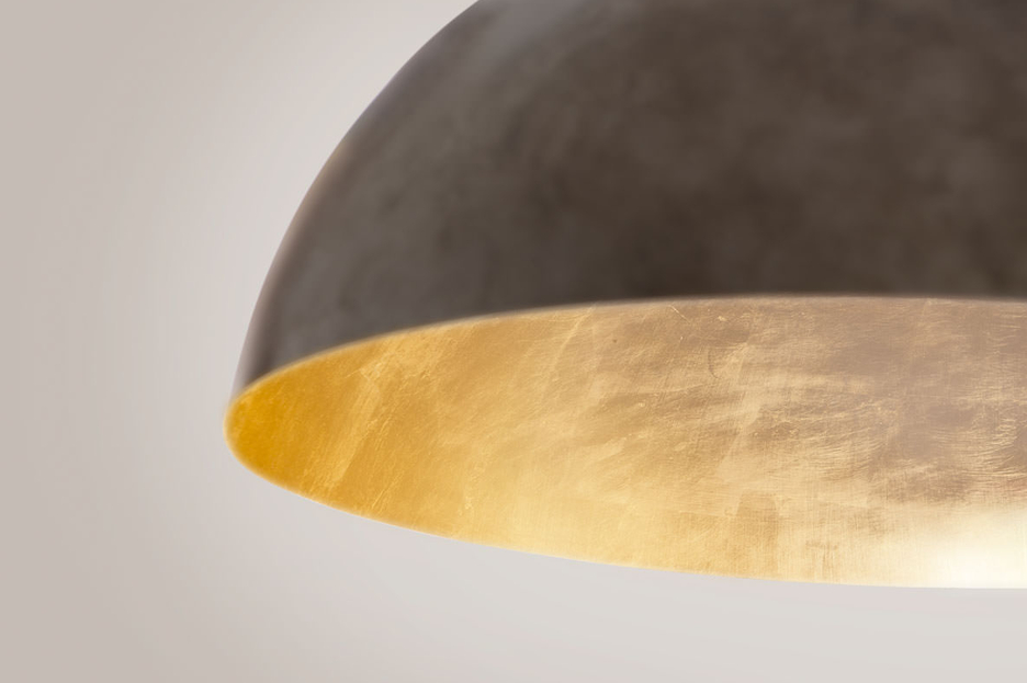 El interior está embellecido con una aplicación manual de pan de oro, plata o cobre, posteriormente protegido con goma laca para un efecto cálido y luminoso.