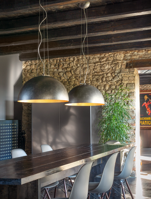Suspensiones de grandes dimensiones, caracterizadas por una forma de semiesfera de acero.