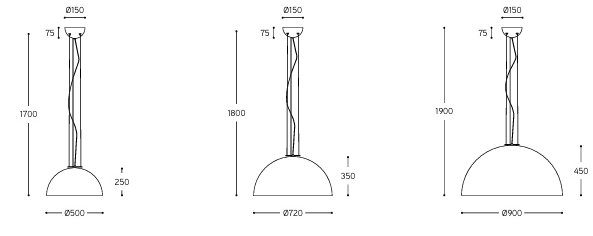 Cada suspensión está disponible en tres tamaños. Toda la fabricación es artesanal.