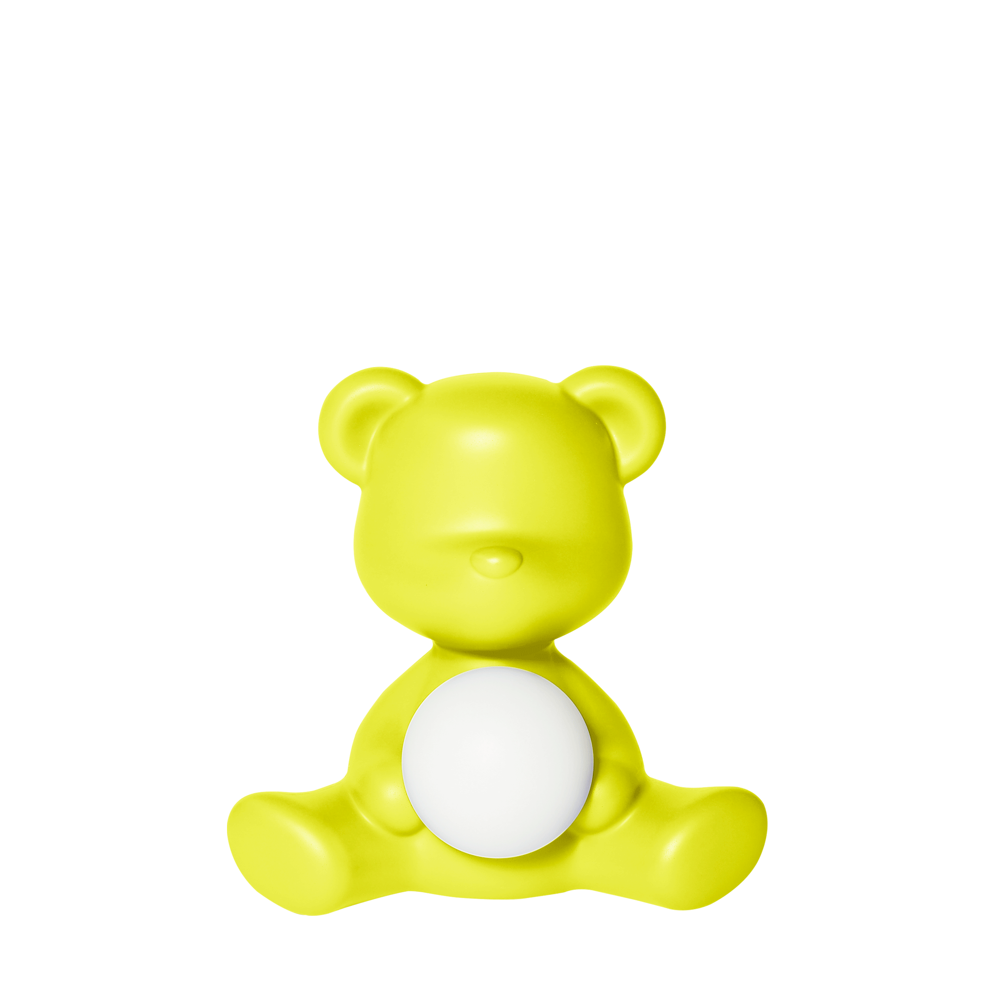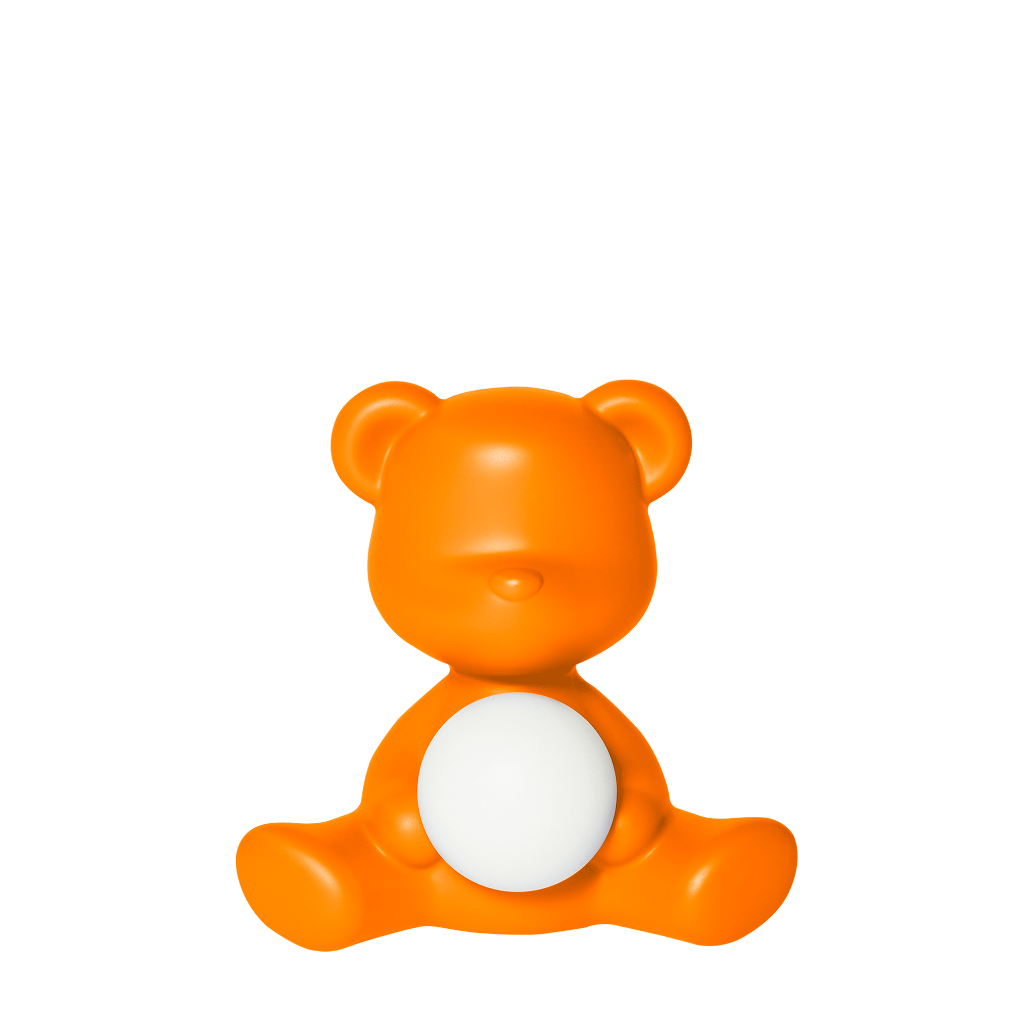 Diseñada por Stefano Giovannoni con la apariencia de un osito de peluche tradicional, Teddy Girl es una lámpara de mesa recargable inalámbrica, que abraza una pequeña esfera luminosa. Tímido y delicado, saca a la luz el alma tierna del osito de peluche.