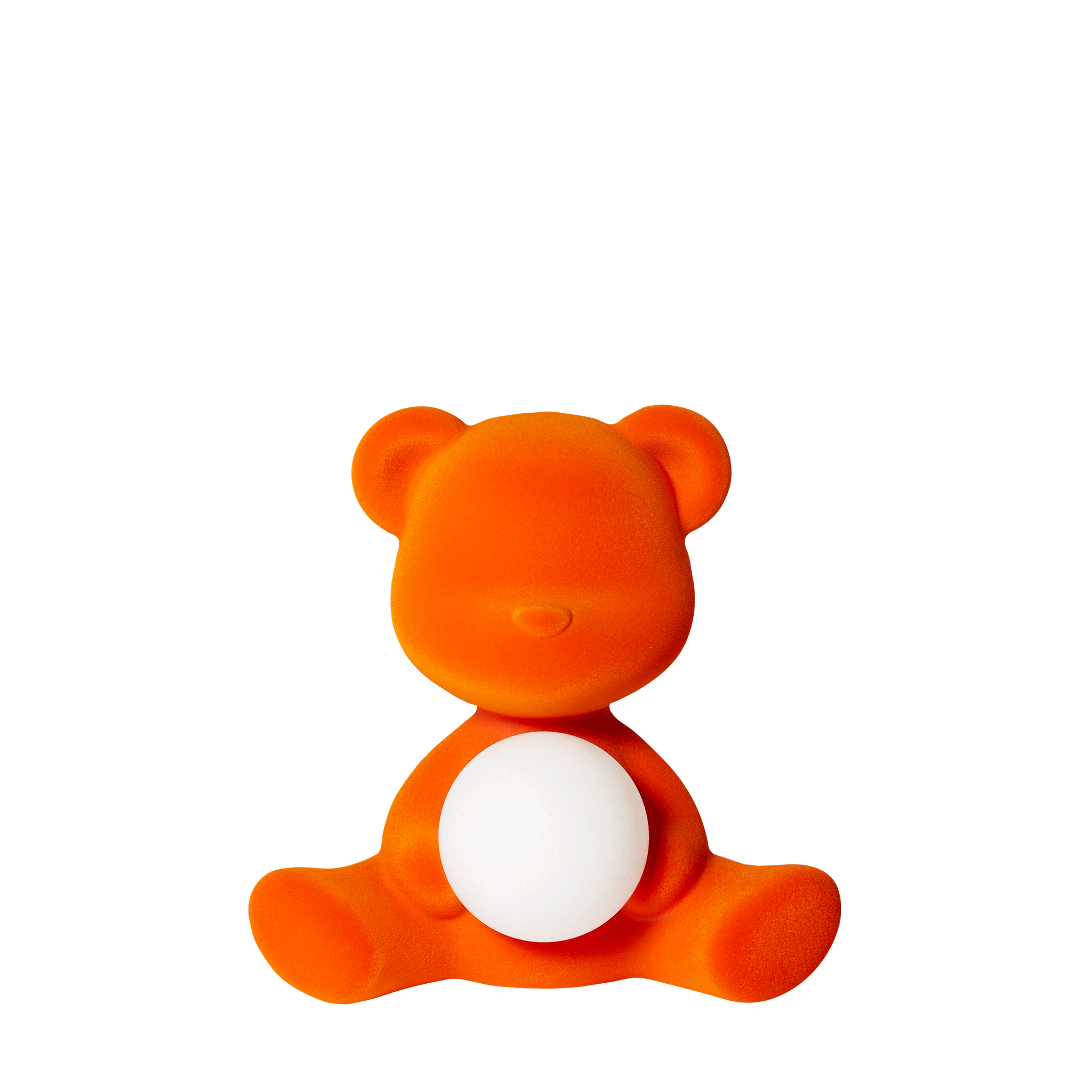Diseñada por Stefano Giovannoni con la apariencia de un osito de peluche tradicional, Teddy Girl es una lámpara de mesa recargable inalámbrica, que abraza una pequeña esfera luminosa. Tímido y delicado, saca a la luz el alma tierna del osito de peluche.