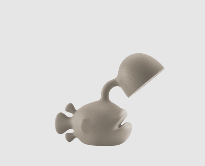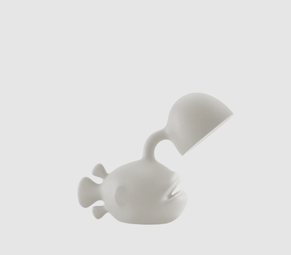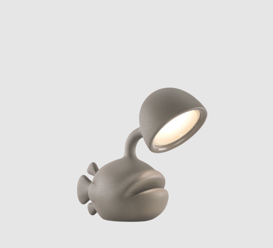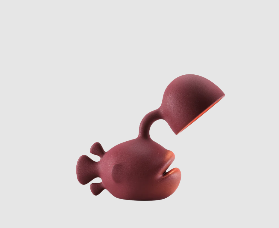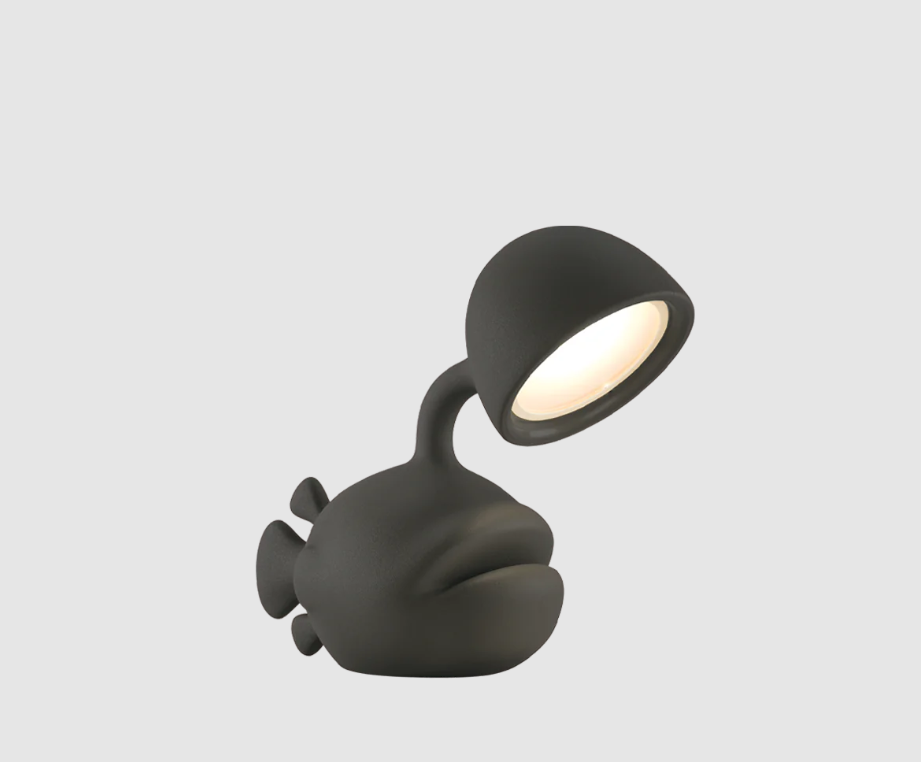 La lámpara de mesa Abyss, diseñada por Dai Sugasawa, destaca por su atrevida forma de pez fabricada en polietileno reciclable.