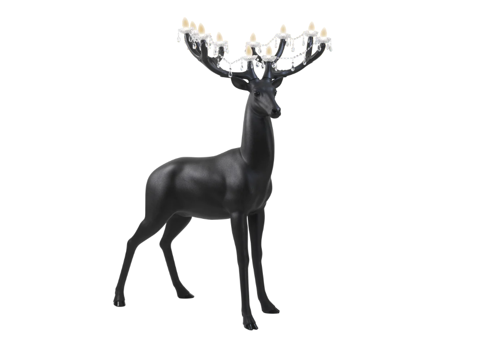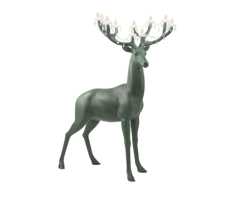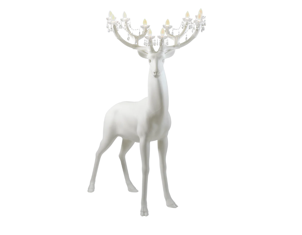 Sherwood es un imponente ciervo de 2 metros de altura cuyas astas se convierten en candelabros decorados con cristales y colgantes.
