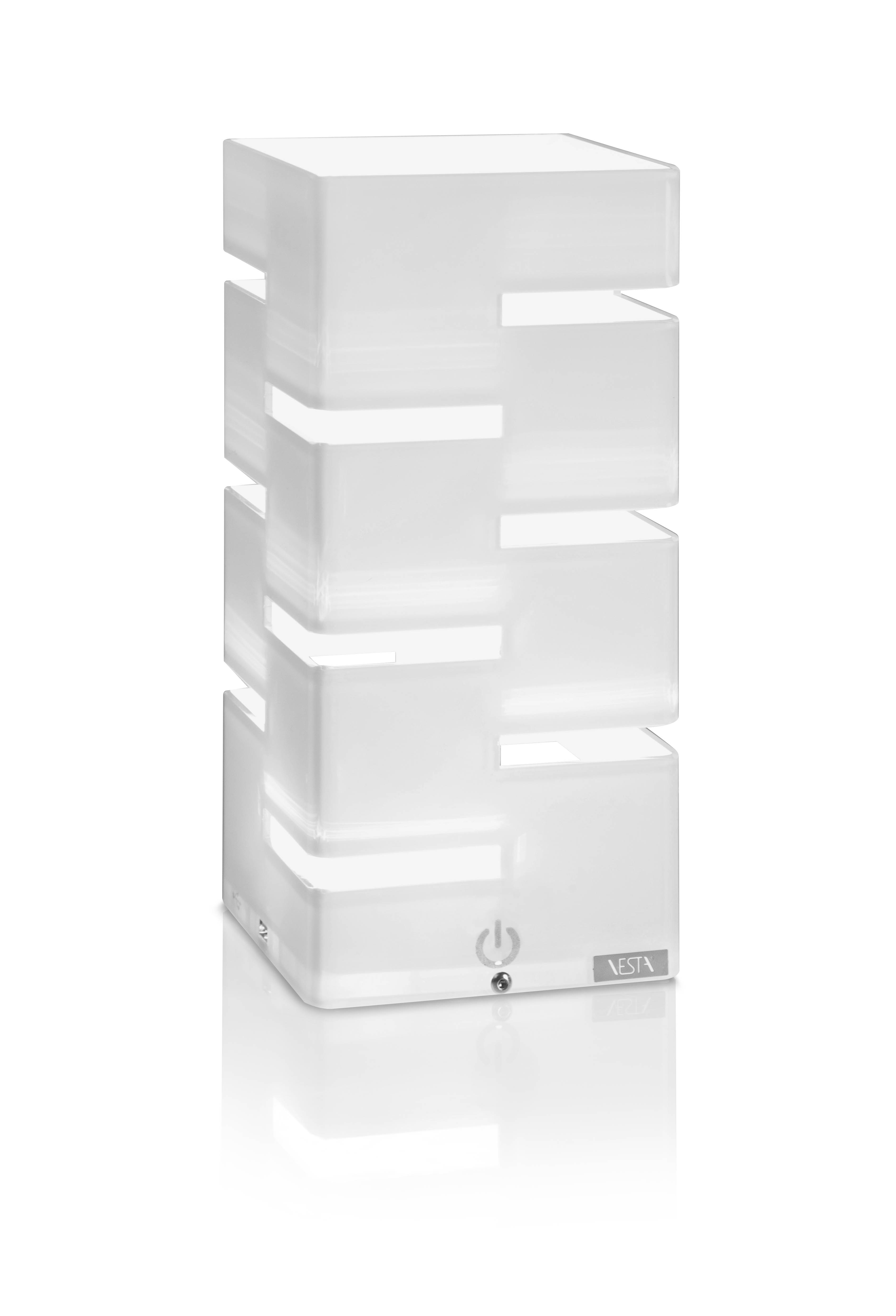 Lámpara de mesa de cristal acrílico bicolor con tallas, portalámparas gris.