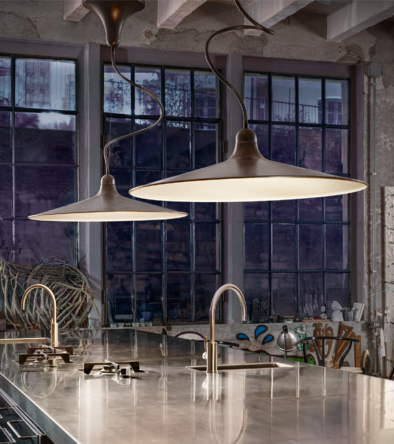 Tres suspensiones de diferentes tamaños, unidas por un mismo concepto: ofrecer una iluminación funcional y de alto rendimiento, a la vez que valoriza el espacio.