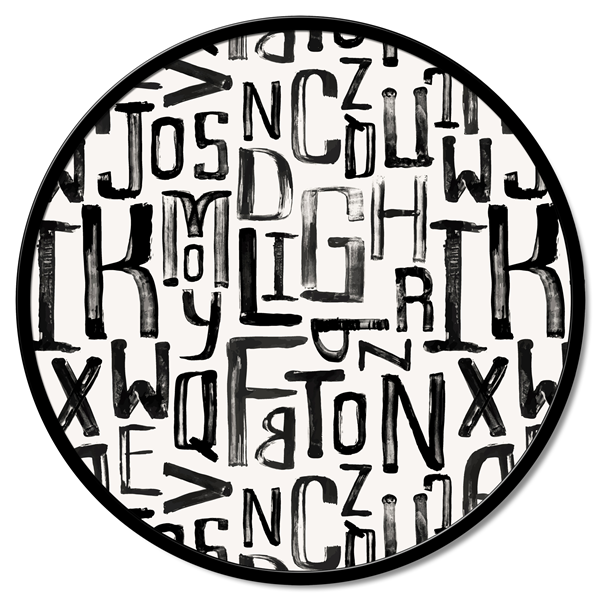 Panel redondo de fibra de madera recubierto de lona de puro algodón estampado en alta definición y con estructura de metal lacado mate.