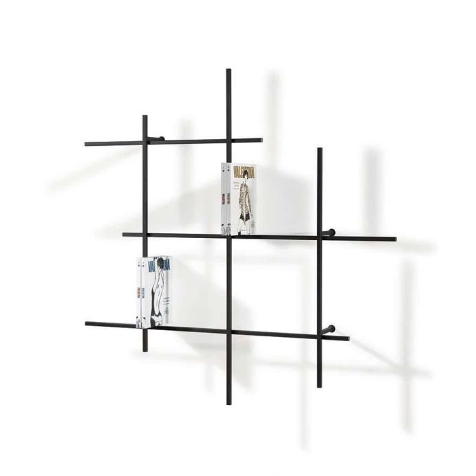 Esta librería contemporánea está formada por una estructura de tubo de acero y contenedores, también de acero, disponibles en variedad de colores para adaptarse a cualquier estilo de decoración.