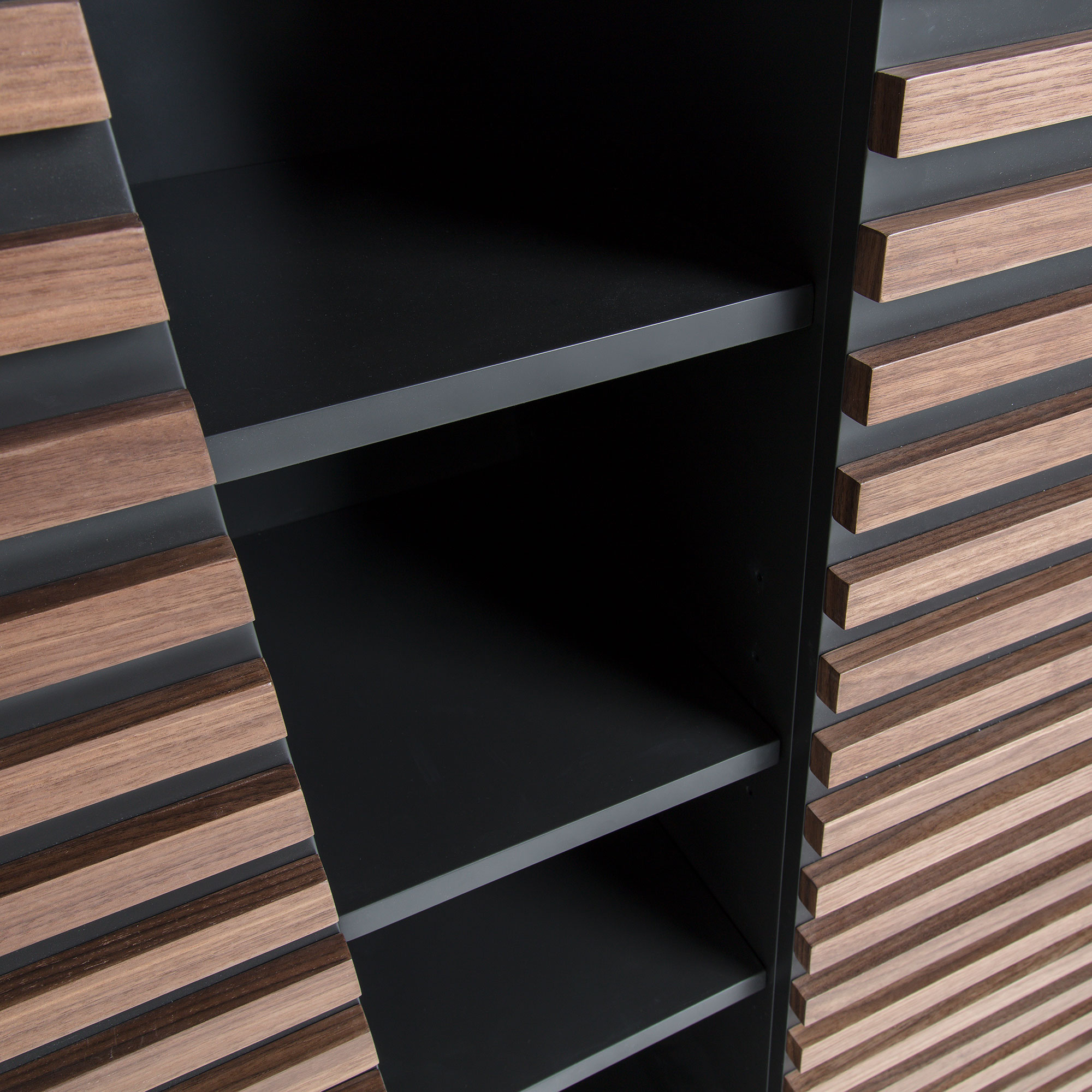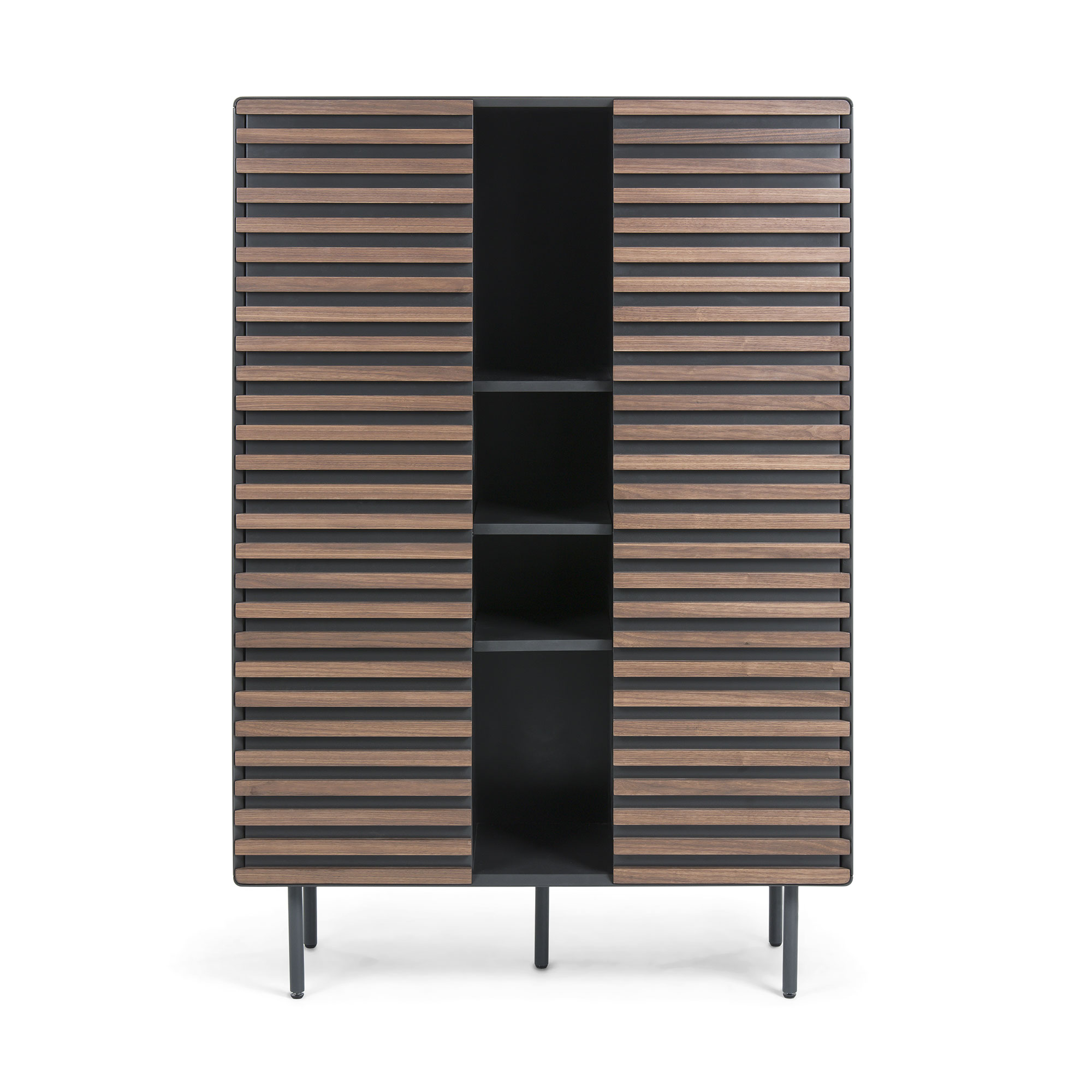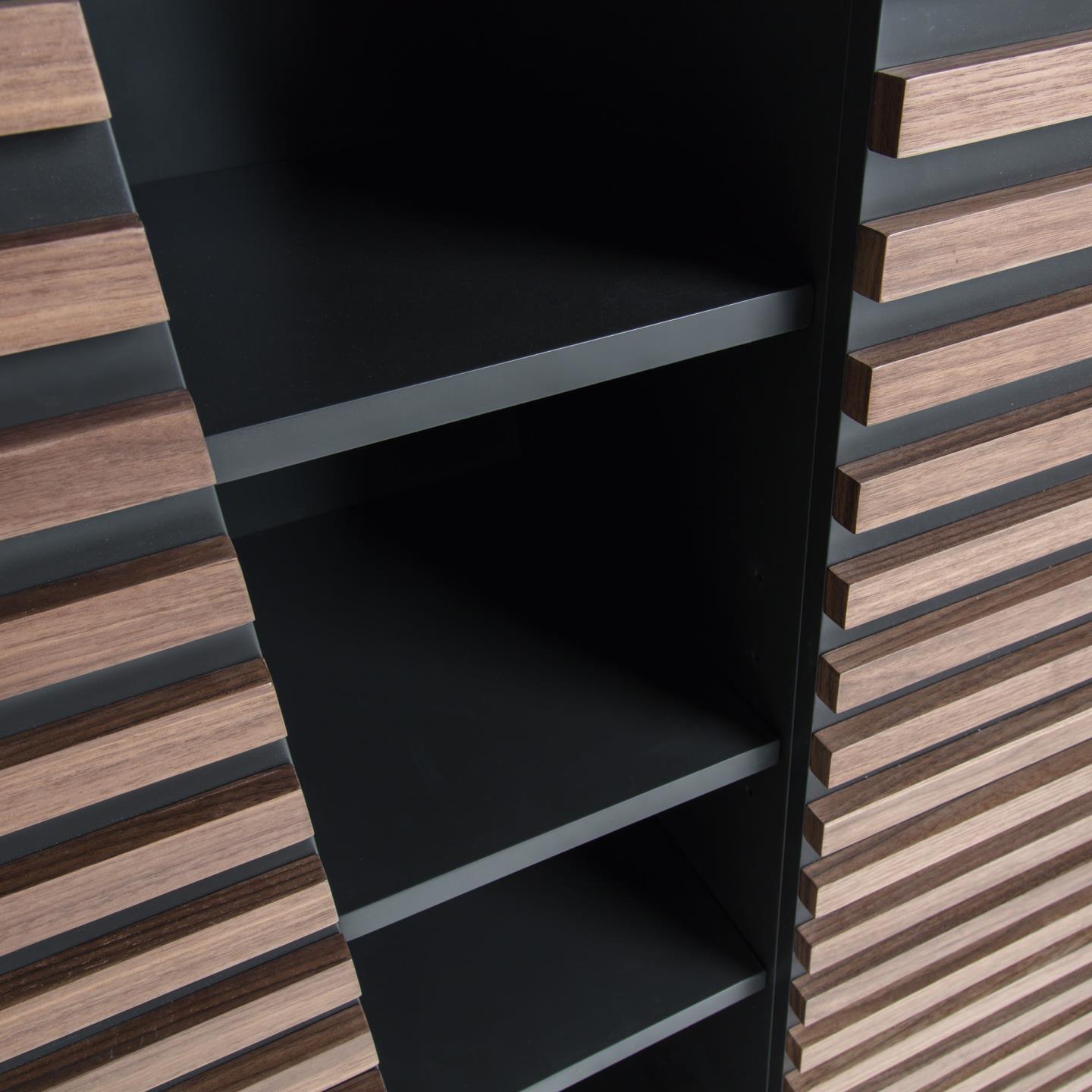 | Material | 72% MDF E0 (tablero de fibra de densidad media con bajas emisiones de formaldehído clase E0), 14% Acero, 14% Chapa de nogal (Juglans nigra) |