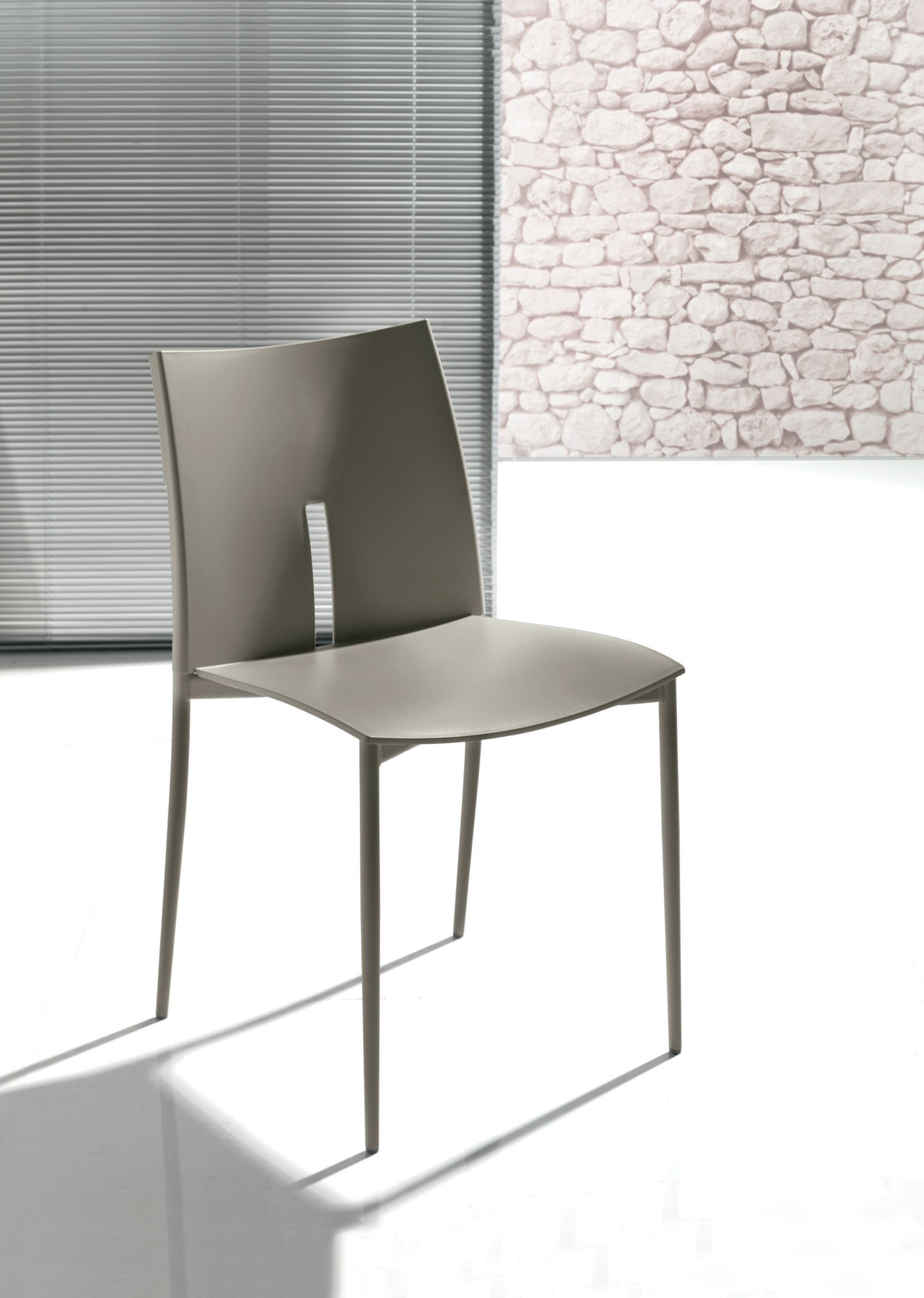 Silla con estructura de acero lacado, asiento y respaldo en polipropileno.