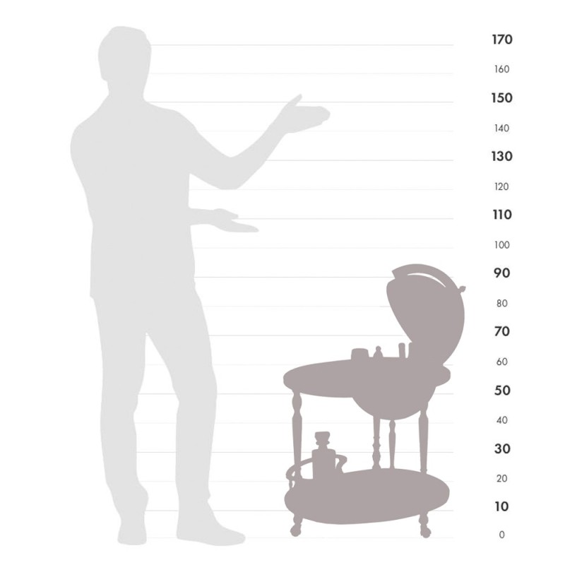 Los colores del mapa combinan perfectamente con los de la madera de la estructura, recordando (como sugiere el propio nombre del globo) los motivos y decoraciones de la antigua Grecia . La gran bandeja superior , además del espacioso compartimento para bebidas dentro del propio globo, proporciona un espacio excelente para preparar tus mejores bebidas para tus invitados o para guardar accesorios de bar, decantadores, vasos y tus botellas de vino y licores favoritas .