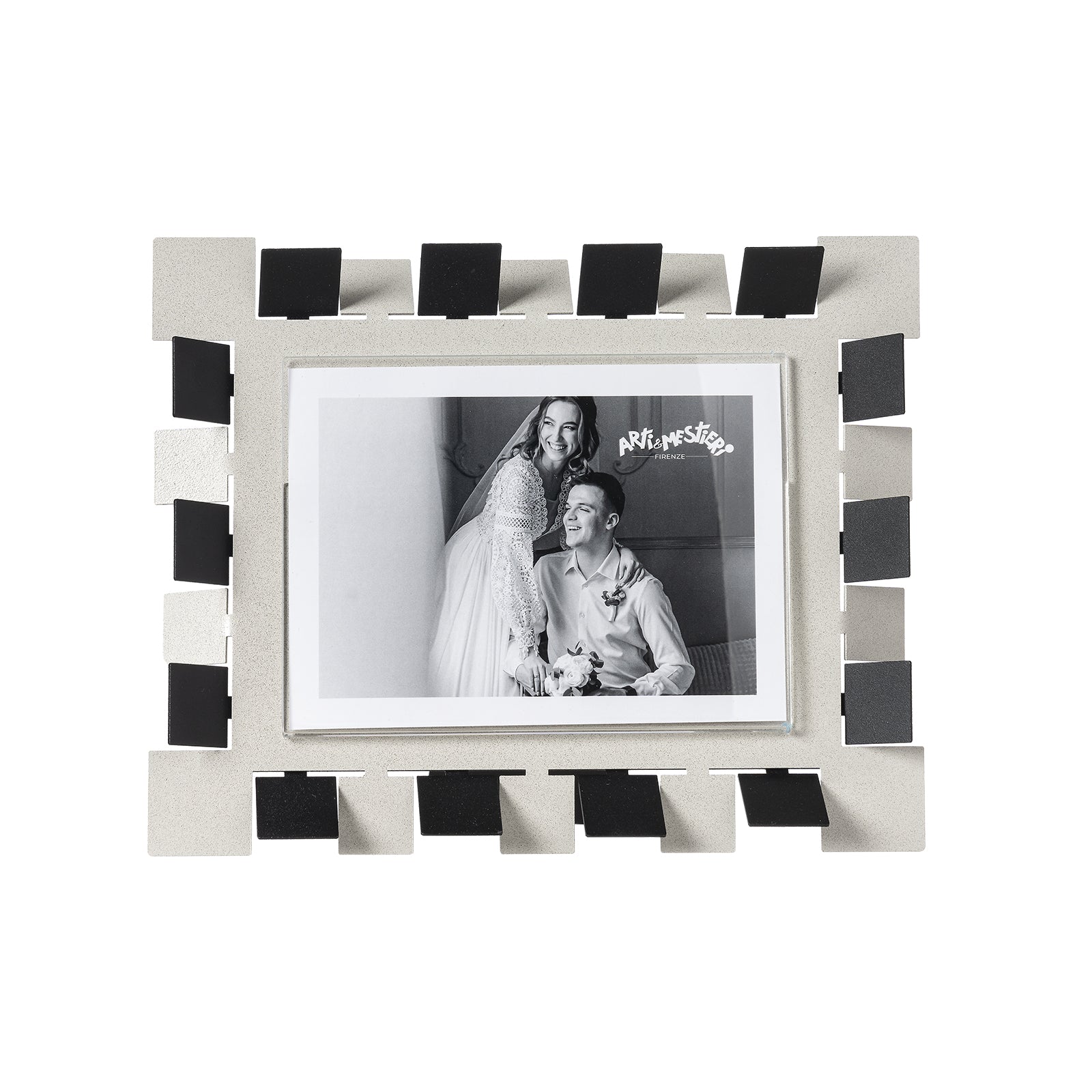 Su diseño tejido, rasgo distintivo de la línea, aporta movimiento y originalidad a toda la estructura, combinando formas modernas con un marcado elemento decorativo. El resultado es un marco de fotos con un carácter audaz y refinado, perfecto para mostrar tus recuerdos más preciados con personalidad.