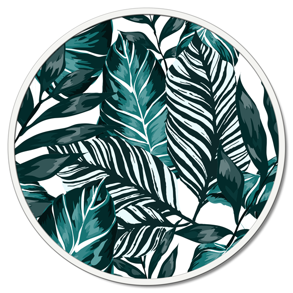 Panel redondo de fibra de madera recubierto de lona de puro algodón estampado en alta definición y con estructura de metal lacado mate.