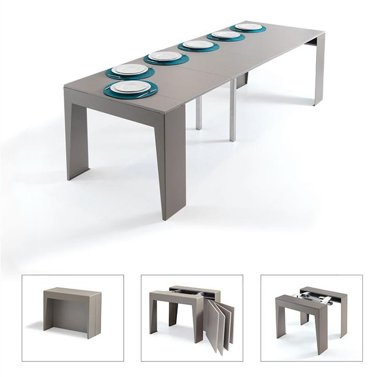 Mesa consola extensible con estructura de acero pintado, tablero y 4 extensiones laminadas.